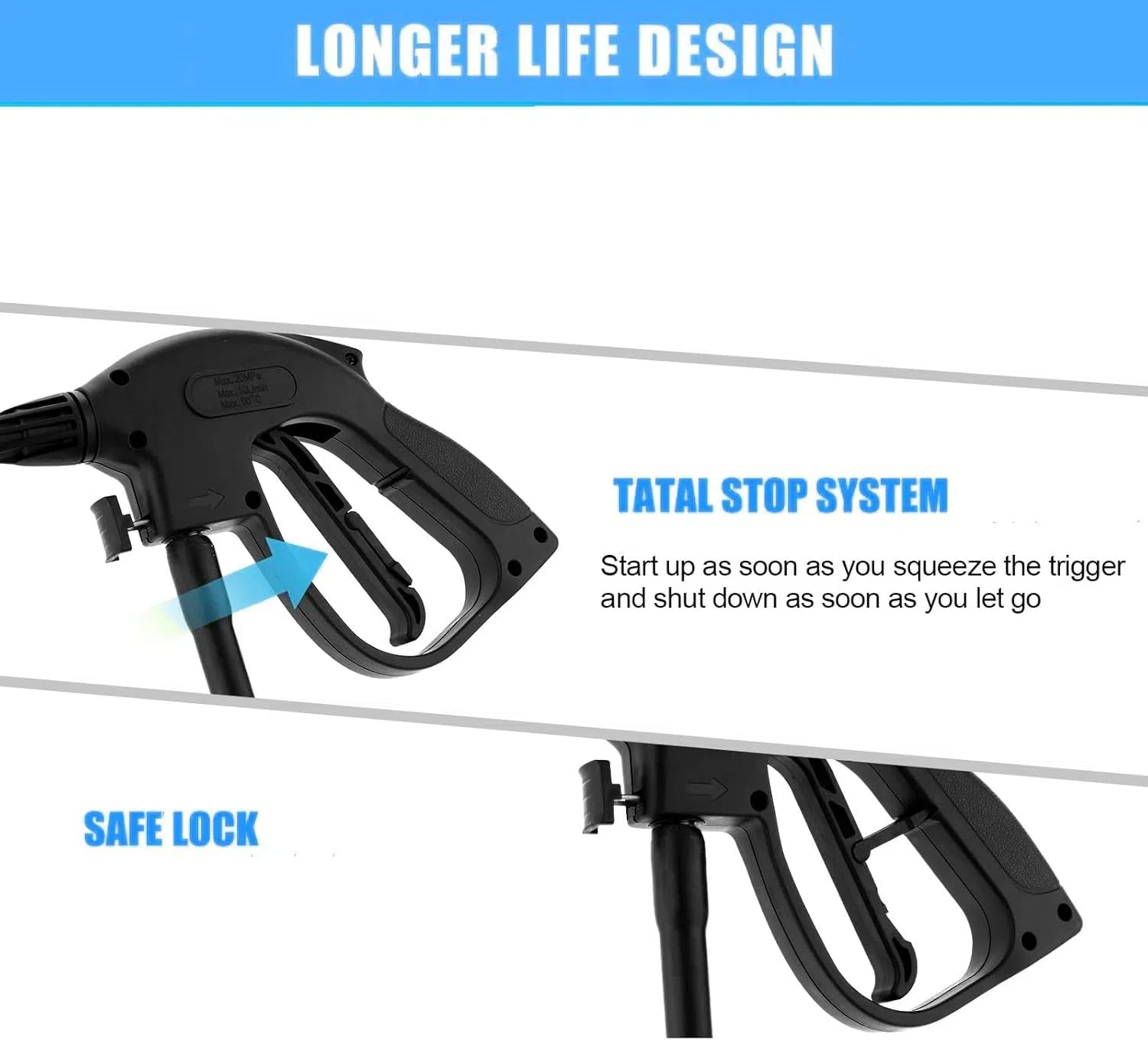 Intelligent Energy-Saving System: Let the Total Stop System work for you! It automatically shuts off the high power cleaner when the trigger isn’t in use, saving energy and prolonging the life of your machine.