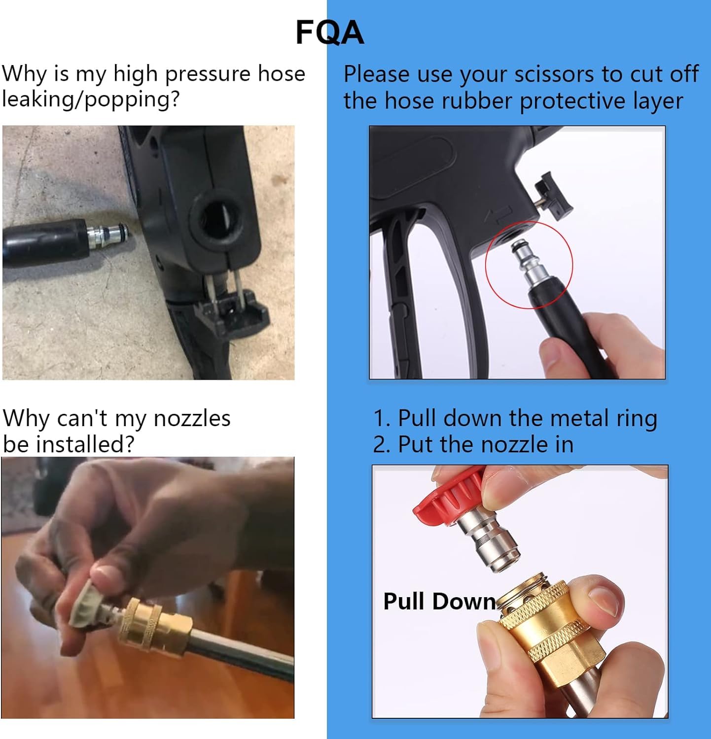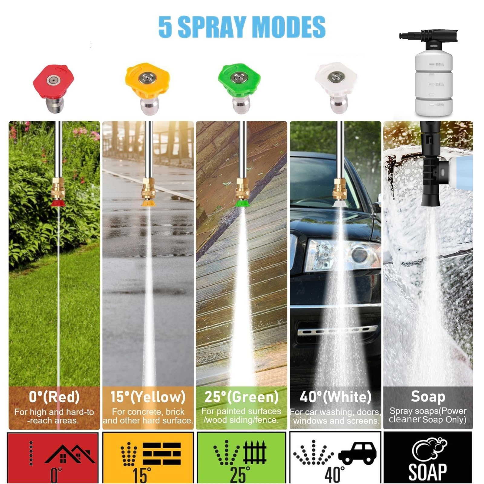 Customizable Cleaning Solutions: Switch up your cleaning routine with 4 quick-connect nozzles, perfect for everything from blasting stubborn dirt to gently cleaning delicate surfaces. The foam cannon adds a pro-level touch to your car wash routine.