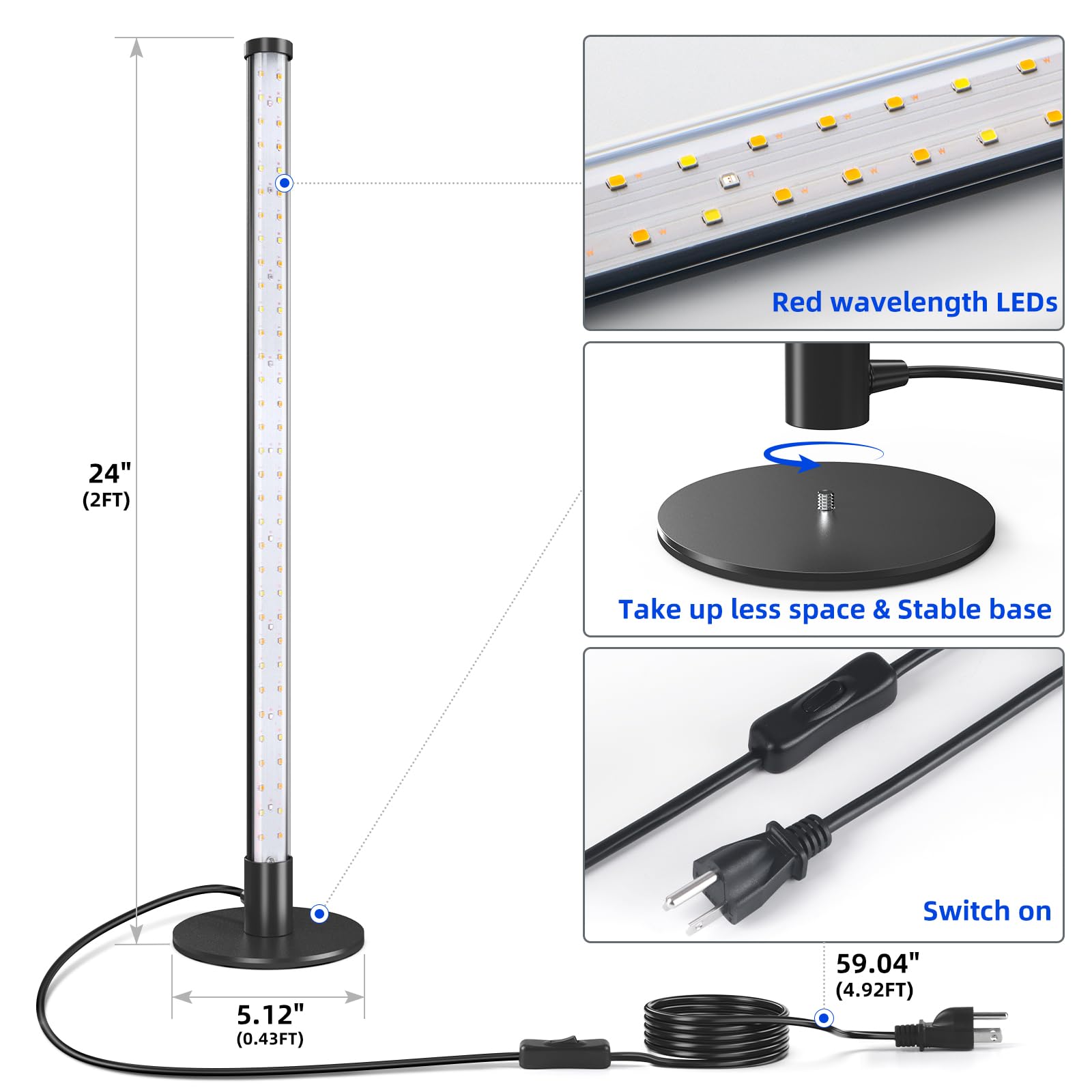 On/Off Control & Stable Base: Our Grow Light stands at a height of 2FT and features an ultrathin base with a non-slip design to ensure stability. Additionally, the included power cord comes with a 4.92 ft long, providing added convenience for easy access and use