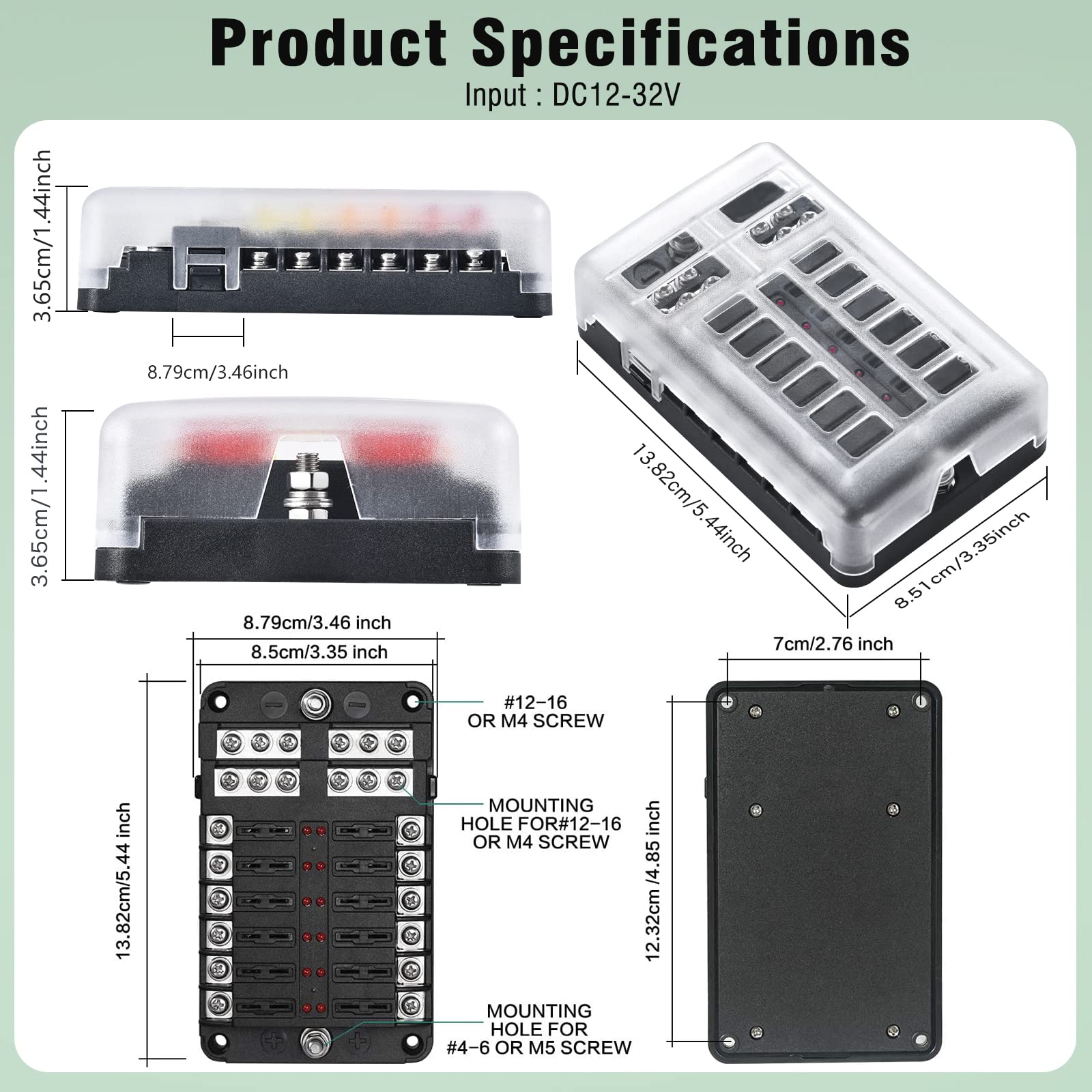 Make Wiring Clean:12 Circuit Fuse Block is applied to ATC/ATO (Middle Size) fuses, every positive terminal screw has a negative one, Perfect solution for organizing and protecting a maze of low voltage circuit wiring in your vehicle