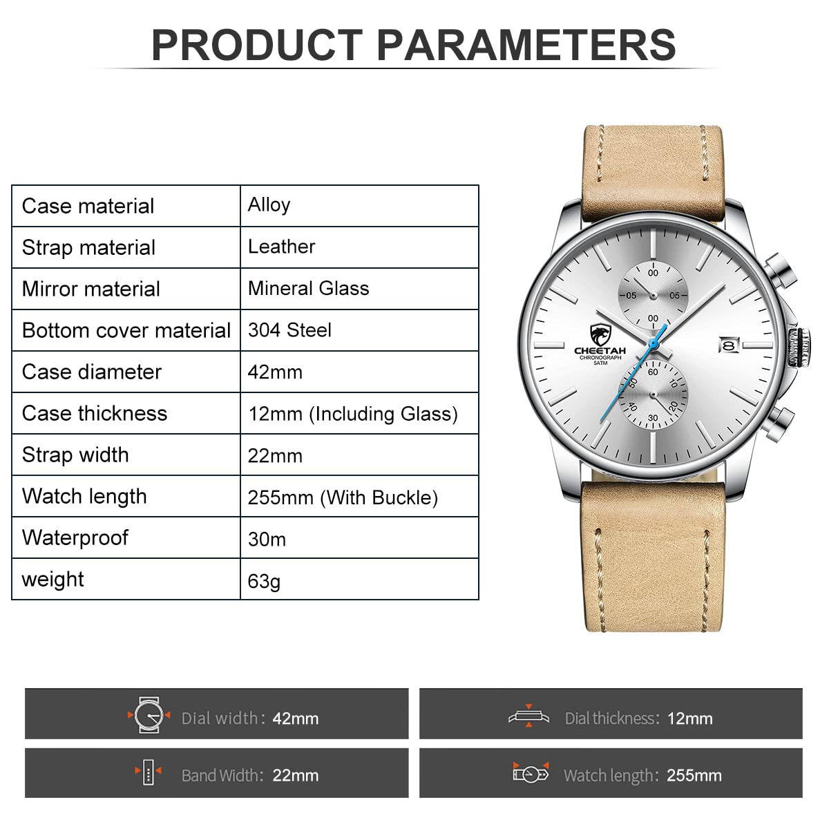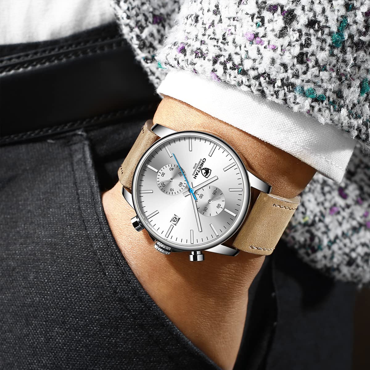 ⌚Sports chronograph: Multifunctional sub-dial can work, chronograph, calendar, run seconds. Provide you with multi-function purpose use.