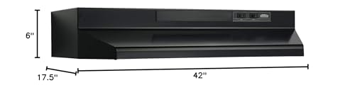 Product Description Upgrade your kitchen with the Broan-NuTone 42-inch Under-Cabinet Convertible Range Hood! This versatile range hood insert offers a complete solution to your ventilation needs by providing both an exhaust fan and overhead light for your stove. This range hood provides a MAX 230 CFM and 6.5 Sones blower performance to quickly remove smoke and cooking odors from the air, and the 2-speed rocker switch allows for quick fan adjustments and provides the ideal level of ventilation every time you cook. The built-in light with protective lamp lens accepts up to a 75-watt incandescent bulb (not included) to evenly illuminate your cooking area, and it is also controlled by a rocker switch for ease of use. This sleek black-colored steel range hood fits neatly underneath cabinets, and it features mitered sides and a hemmed bottom with no sharp edges to help ensure safety and provide a more decorative look. The one-piece dishwasher-safe aluminum grease filter offers easy cleaning so you can maintain optimum grease capture and keep your kitchen ventilated. This 4-way convertible range hood unit measures 17.5" x 42" x 6" and installs as 3.25" x 10" ducted opening connected vertically or horizontally with damper, 7" round vertical ducting (damper sold separately), or as non-ducted with air recirculation (filter sold separately) to provide versatile installation options at least 18" above the cooktop. It can work in an ADA-compliant application as well. It is both UL-Listed and for safety and protection, and it includes a 1 year limited warranty. Enhance your kitchen with the Broan-NuTone F404223 Range Hood! From the Manufacturer The Broan F40000 Series convertible Range Hoods adapt to any installation. These 4-way convertible range hoods will fit into most all applications. Enclosed light and fan/filter assemblies make for easy cleaning. Since 1932, Broan-NuTone LLC has led the industry with forward-thinking residential ventilation products, unsurpassed built-in convenience products and superior customer service. While global expertise plays a critical role in Broan-NuTone's ability to being able to meet and exceed the needs and desires of homeowners and designers alike, Broan-NuTone is very proud of the fact that over 80-percent of their products sold in the United States are designed, engineered and manufactured in the United States with U.S. and imported parts. Broan-NuTone is committed to developing revolutionary products that improve the indoor environment as well as implementing procedures to preserve the outdoor environment. Broan-NuTone offers a wide selection of products that help meet the requirements of all three major green building programs: ENERGY STAR, U.S. Green Building Council's (USGBC) Leadership in Energy and Environmental Design (LEED) for Homes, and the National Association of Home Builder's (NAHB) Model Green Home Building Guidelines. Broan-NuTone's inspiring heritage provides the foundation for its three award-winning, global brands-Broan, NuTone and BEST. BEST range hoods are the "Ultimate in Kitchen Ventilation" featuring state-of-the-art performance and Italian design.