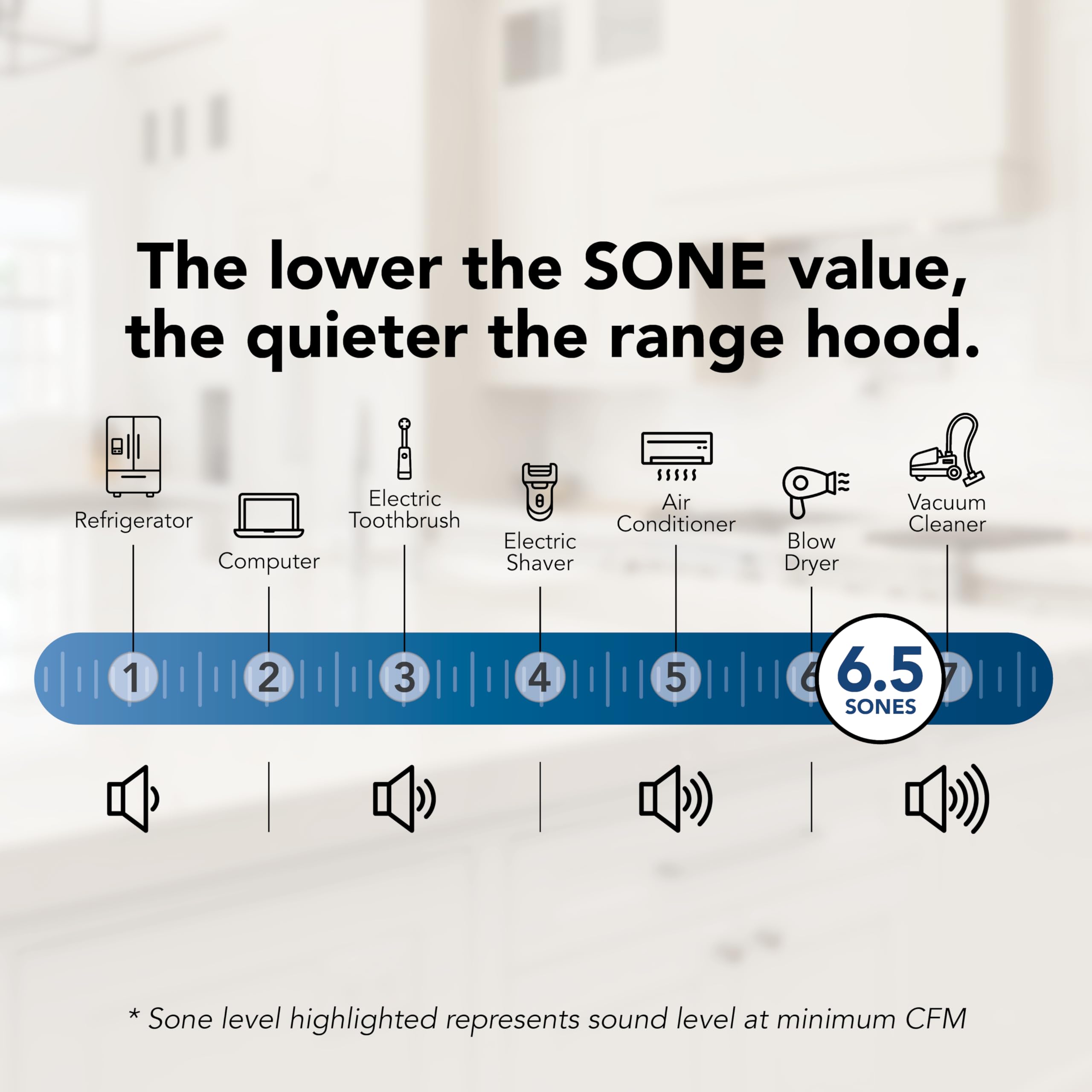 IMPROVES KITCHEN AIR QUALITY: Provides a MAX 230 CFM and 6.5 Sones performance to quickly remove smoke and cooking odors from the air, and the 2-speed rocker switch allows for quick fan adjustments