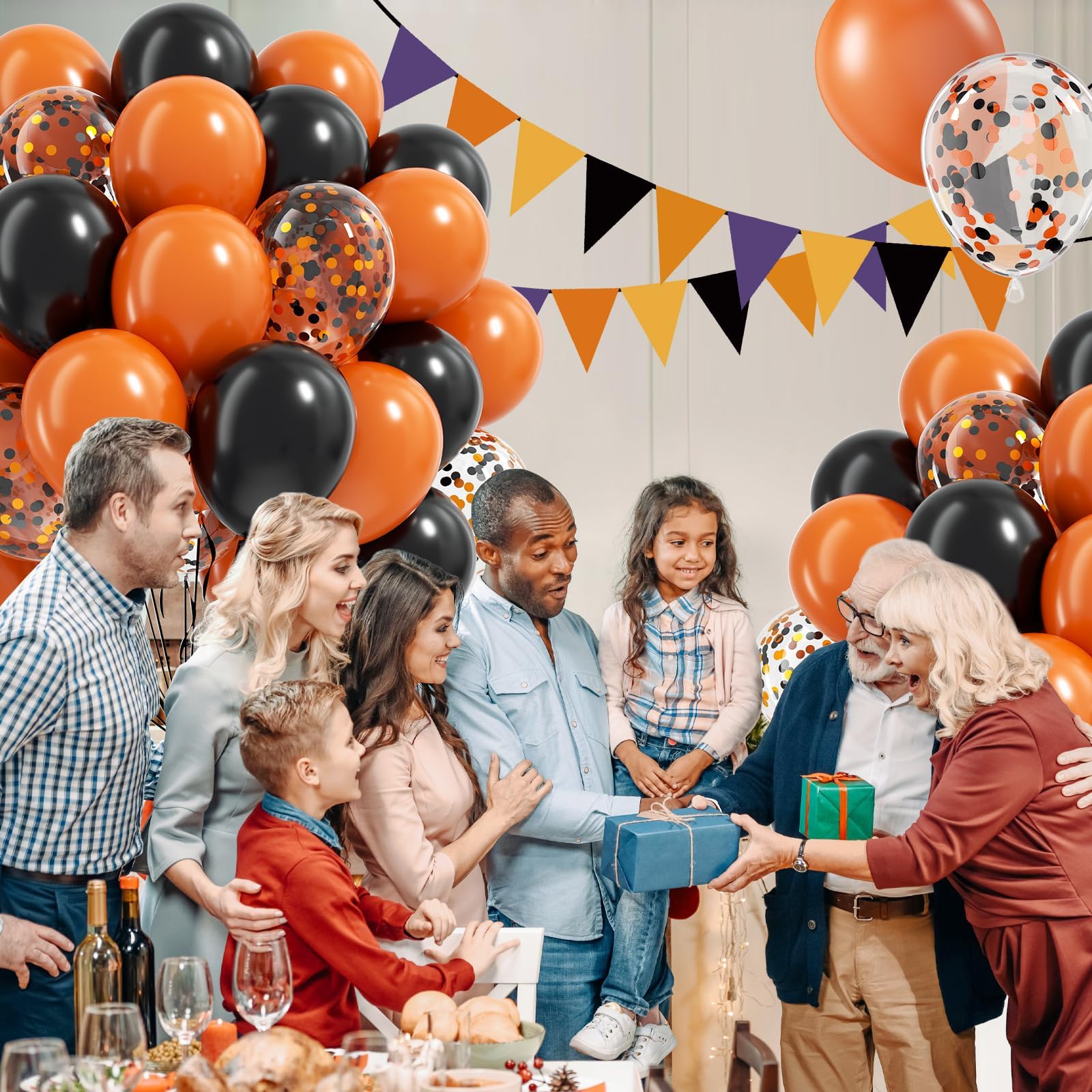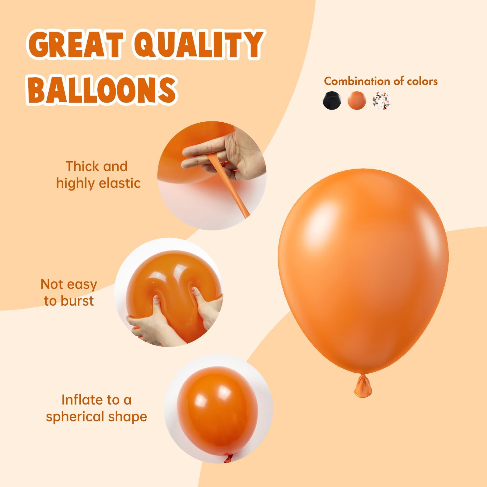 Package Include: The orange and black balloons include 12inch orange balloonsx25, 12inch black balloonsx25, 12inch black orange confetti balloonsx10, black ribbonx1, decorative stripx1, glue dotsx20