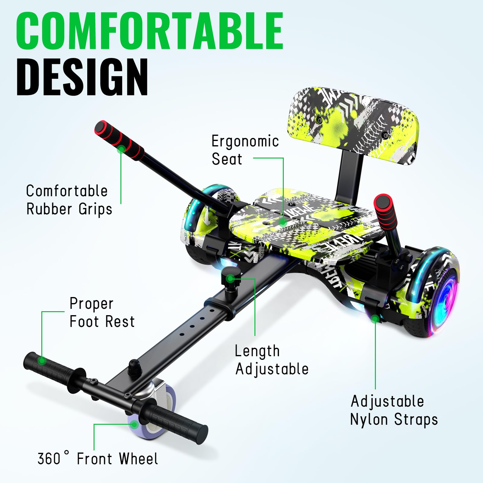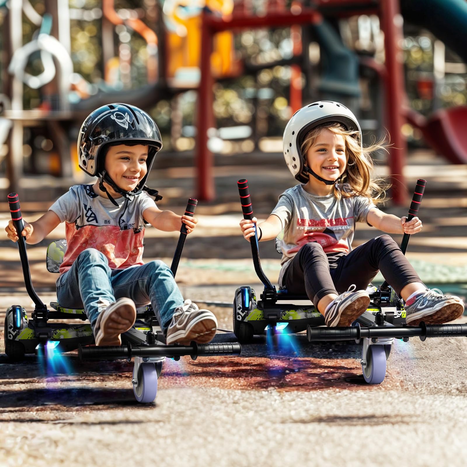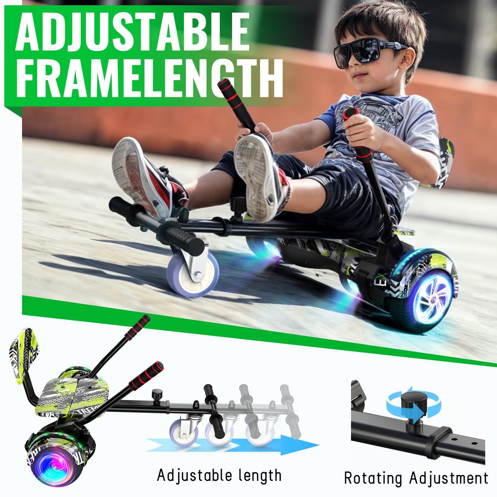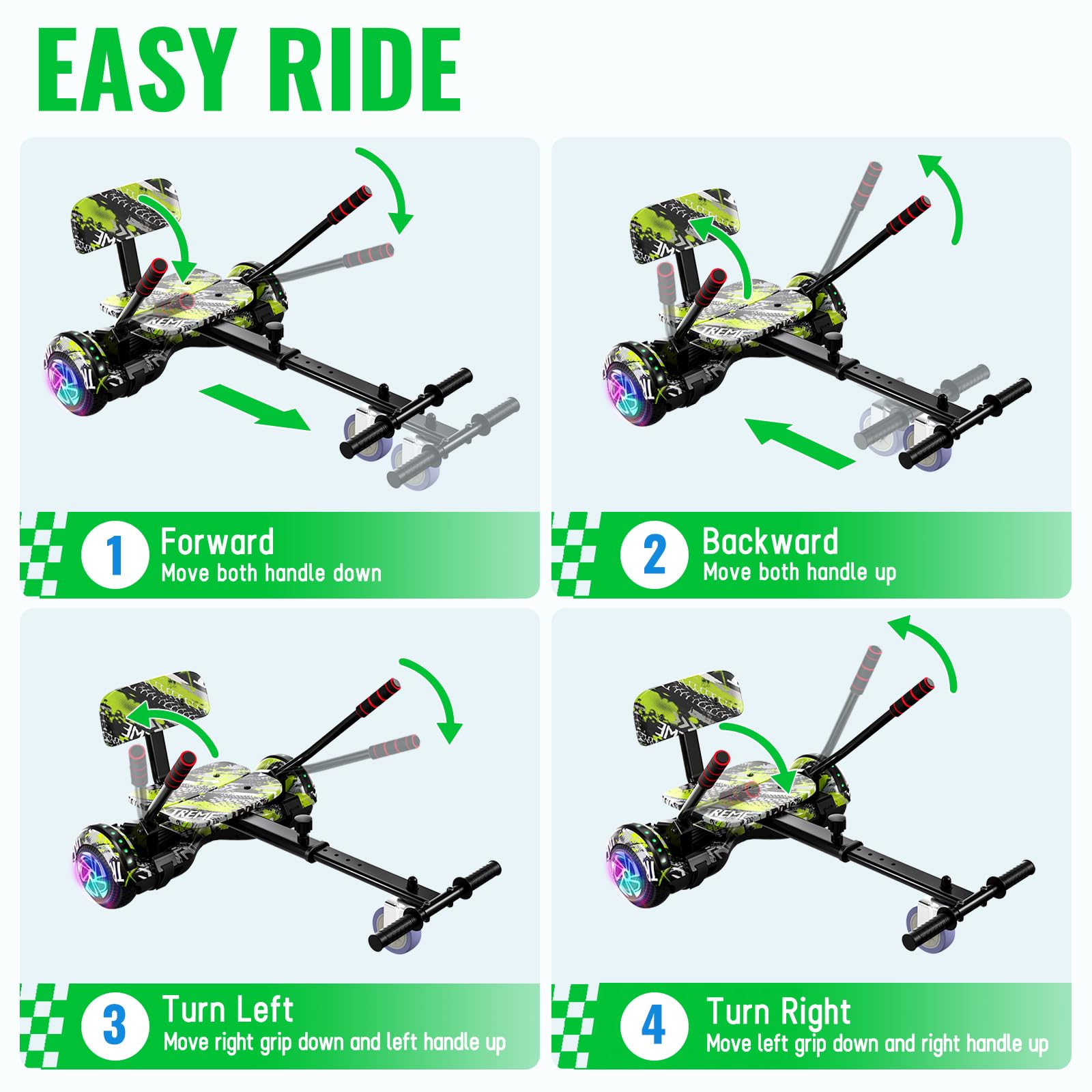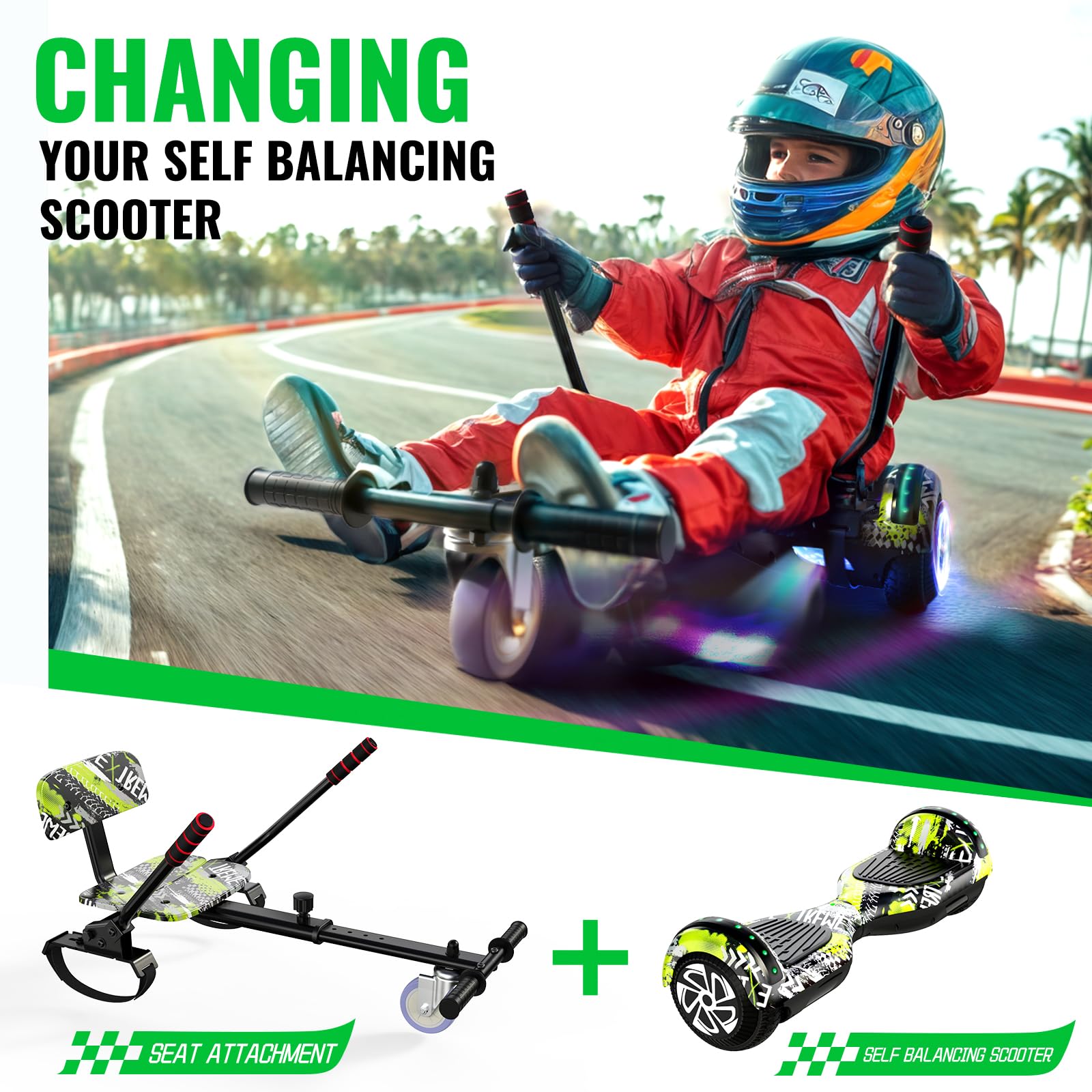 Match with Comfortable Scooter Kart Seat: Safe and comfortable driving with great fun factor. Seat expansion makes the self balance scooter very mobile and fast. Adjustable length from 72cm to 85cm, a hoverboard with seat very suitable for kids and adults.