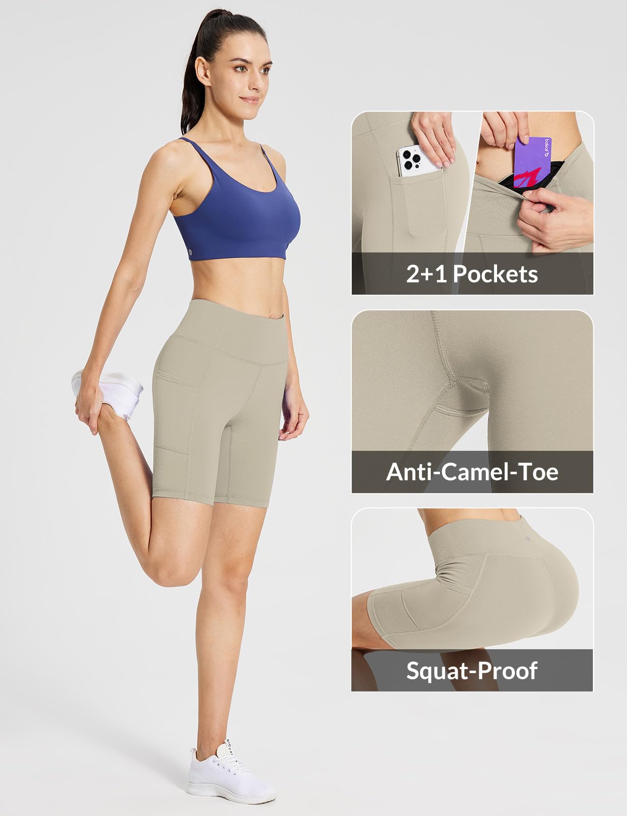 High Waistband: Wide elastic waistband provides tummy control. These belly control compression shorts help you maintain a slender figure and prevent sliding while doing yoga or exercise.