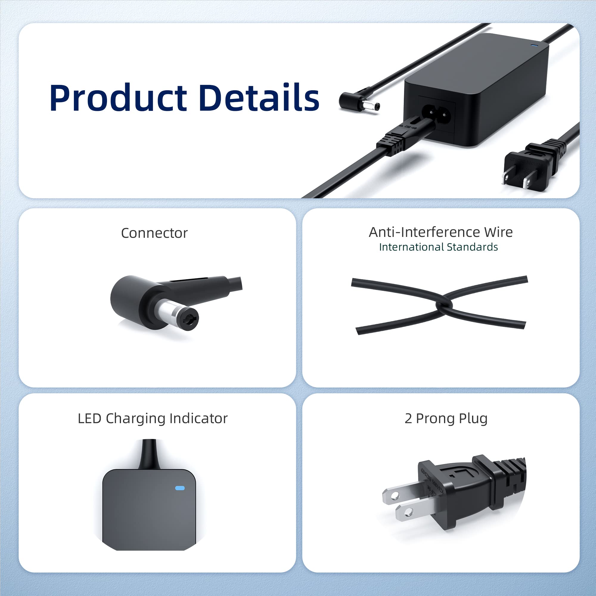 Charger Input - 100-240V 50-60Hz Output: 19V 3.42A Watts: 65 Watts (Compatible with 19V 2.37A 45W)