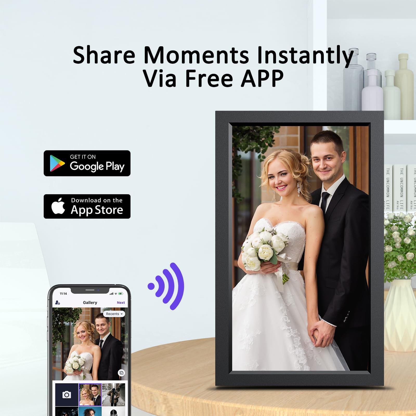 【INSTANT WIRELESS SHARING】: Connect the digital photo frame to a 2.4 GHz WiFi and share your life moments via the free Phone App (works on Android & iOS), let your family and friends feel your joy within seconds. You can also send instant or timed greeting cards and pop-ups to the digital frame. It’s a perfect gift for the elderly who are not good at using smart phones to stay connected with the younger generation.