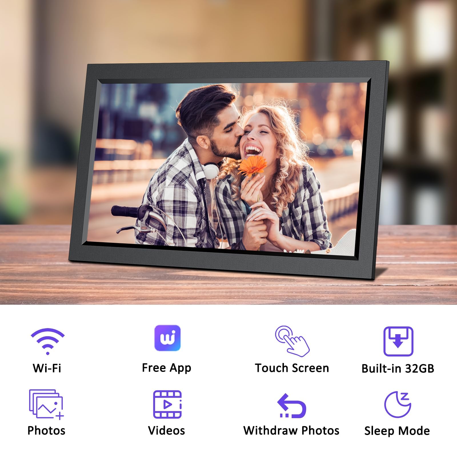 【15.6 Inch Large Touch Screen】: Large Digital picture frame with 1920*1080 full HD IPS panel displays clear and vivid photos and video at full angle, to recall your precious moments with high quality landscapes and portraits. User-friendly touch screen makes it easy-to-use for all ages, even an elder can finish the setup in a few minutes.