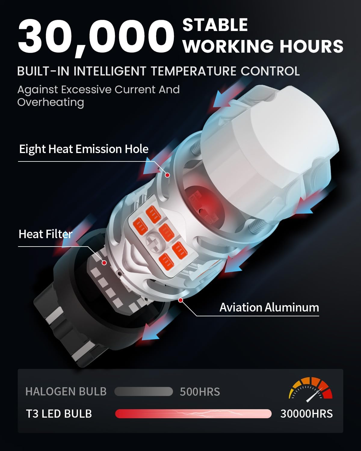 Light Up the Road: Each 7440 7443 bulb has 20pcs high quality LED chips. One pair bulbs provide 48w, 4000lm for every turn, truly 500% brighter than halogen bulb, Fit Size: 7440 7443 7444 7441 992 992A W21W 7440A 7440ST W21W WY21W. much brighter which makes it easier to see when your turning
