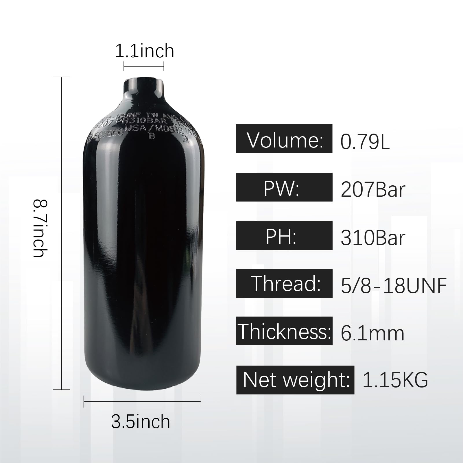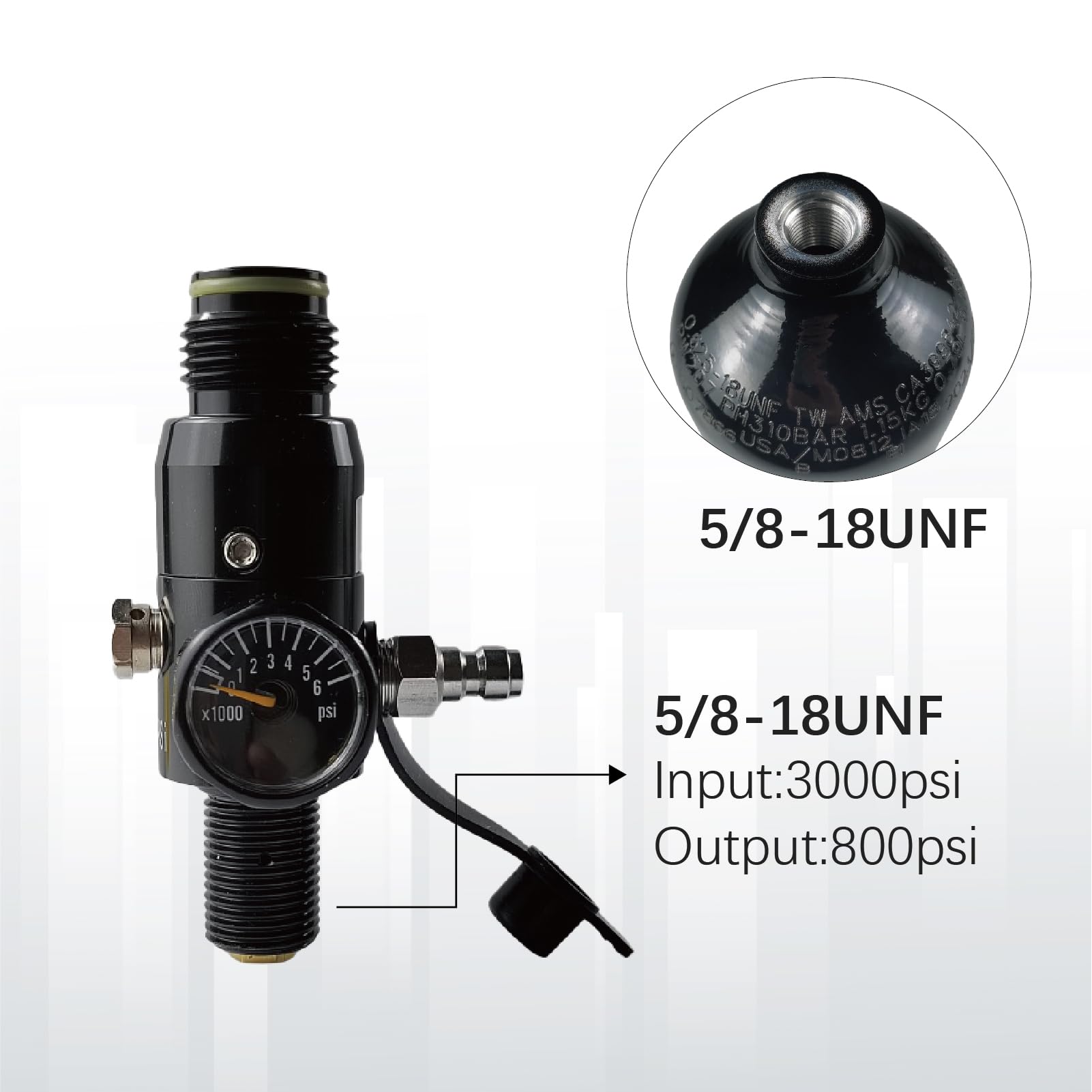 The paintball air tank Comes with 800psi standard output paintball regulator,the regulator is 3000psi input and 800psi output,it can be used for most paintball markers