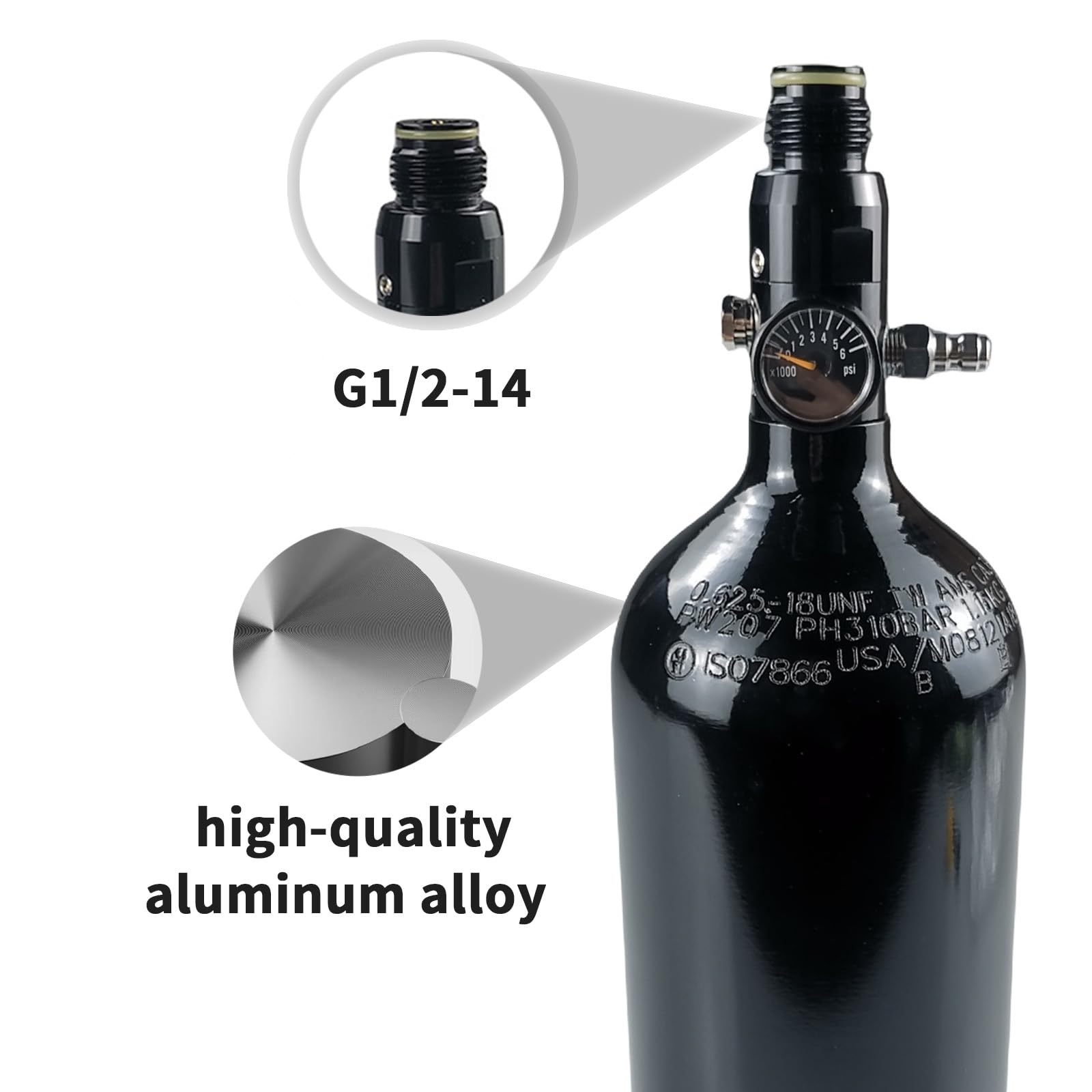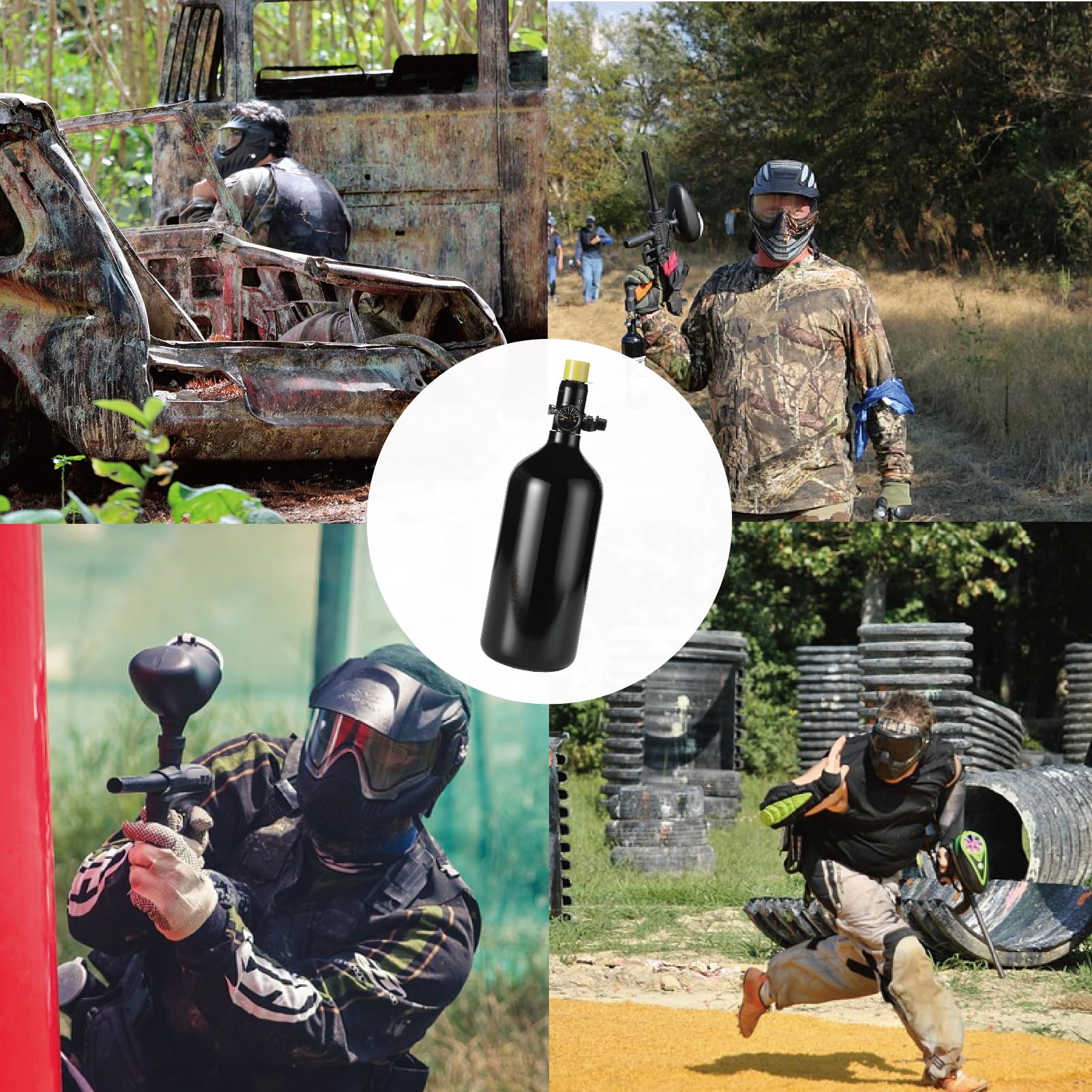 Attention: In order to comply with transportation regulations, the regulator and the air tank are separate, and the regulator needs to be installed on the paintball tank by oneself upon receipt of the goods
