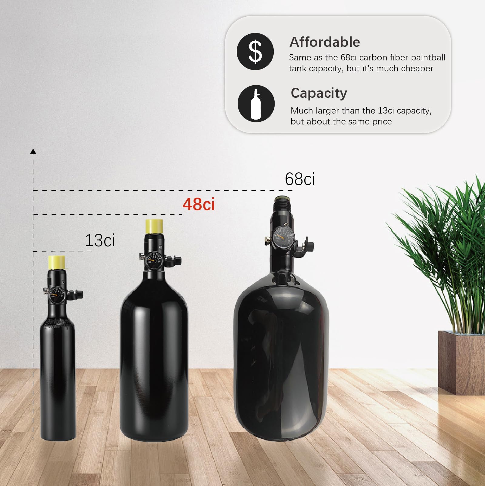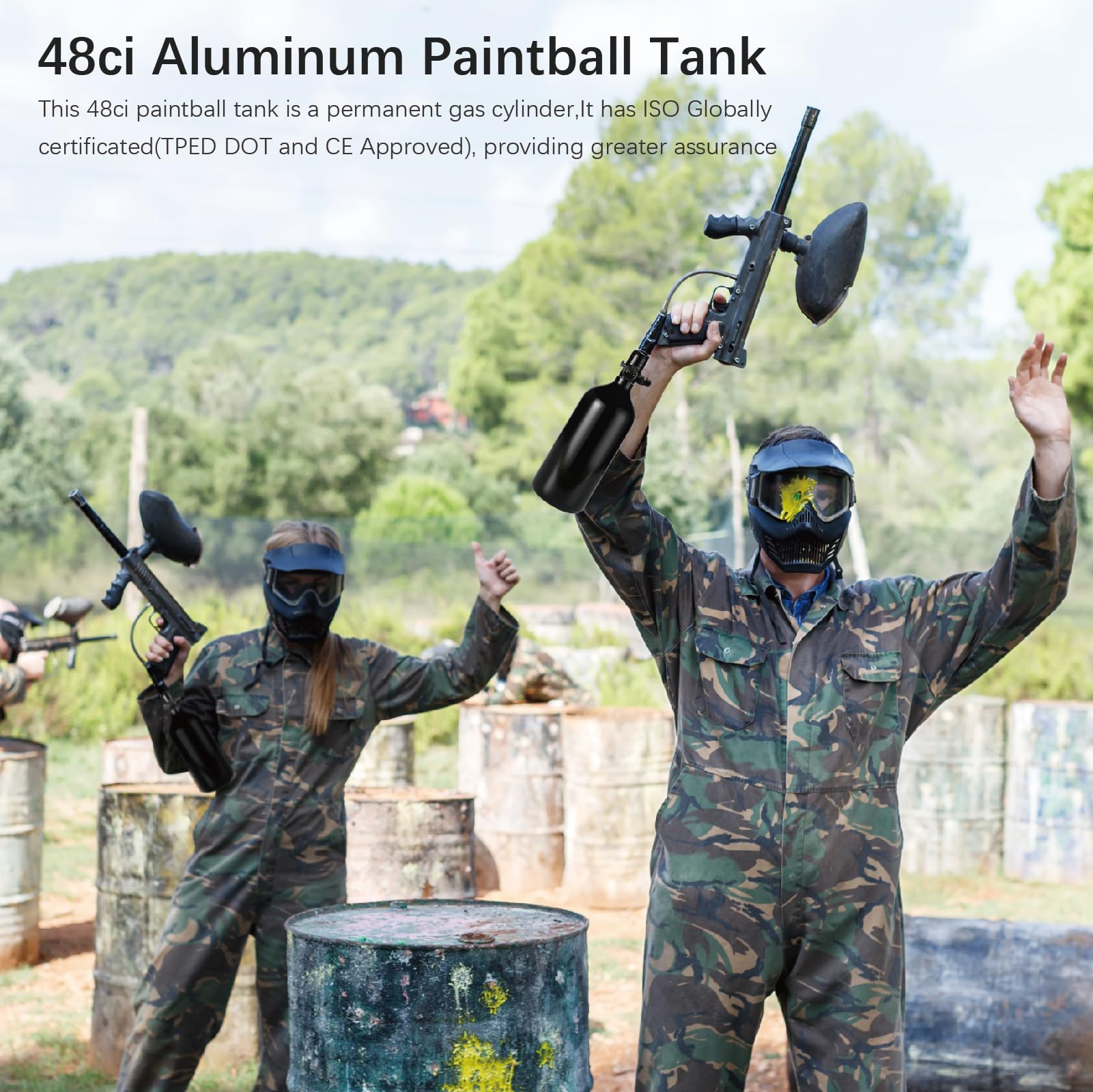 Globally certificated light weight compact design 48ci 3000psi aluminum paintball tank,suitable for all paintball guns and airsoft