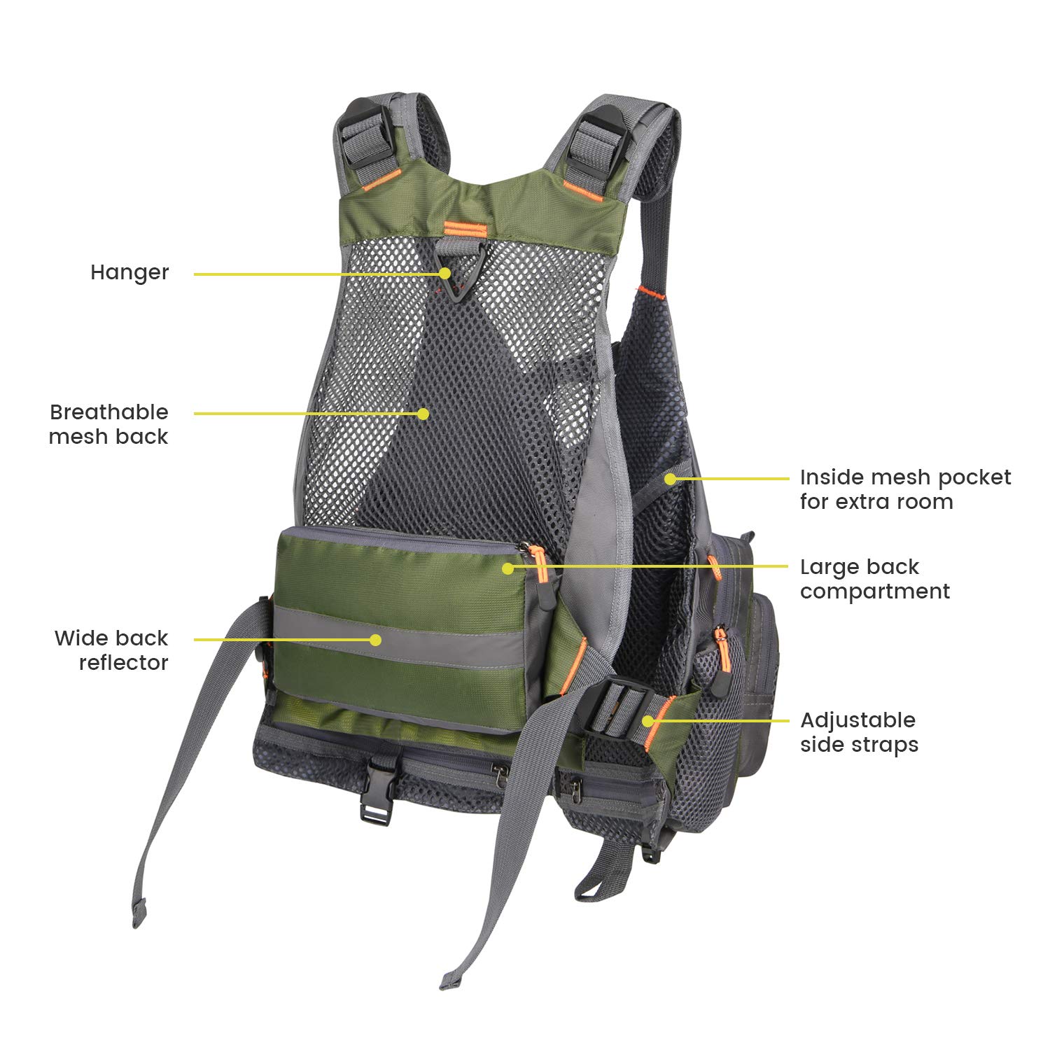 Reflective Stripes: Reflective stripes are built in the front and back of the fishing vest, which allows you to be seen when enjoy fishing in not so bright environment