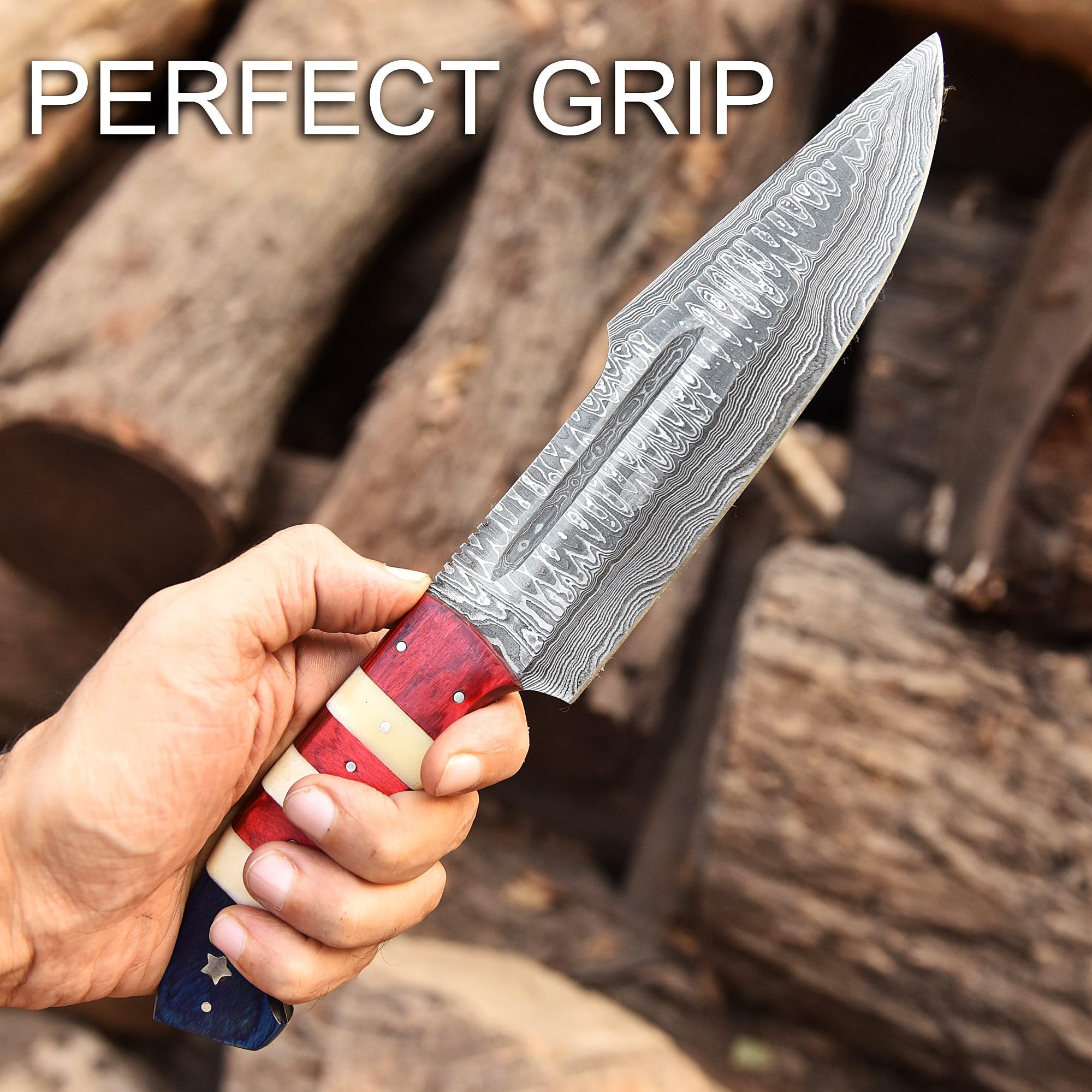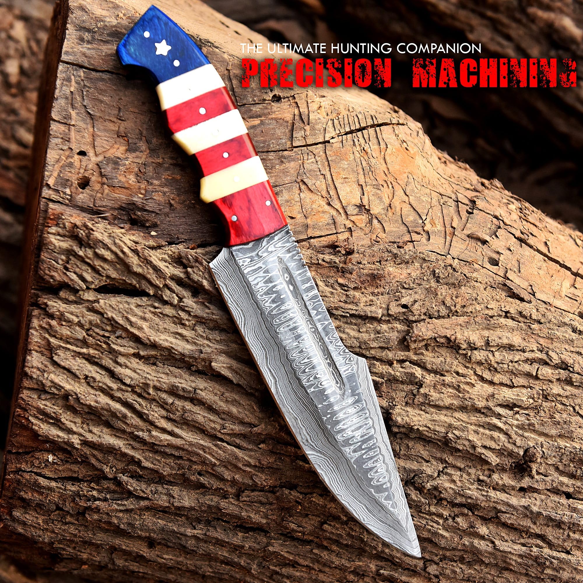 Durable Fixed Blade Knife with Sheath : Crafted from Damascus steel, this knife fixed blade is designed for long-lasting sharpness and strength. The included leather sheath ensures safe storage and quick access