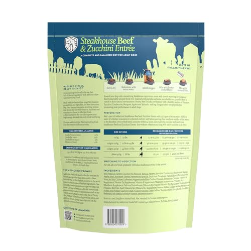 Addiction Steakhouse Beef & Zucchini Air-Dried Grain-Free Dog Food – Complete Meal or Topper with Natural Ingredients for Digestive and Skin & Coat Health, 2lb