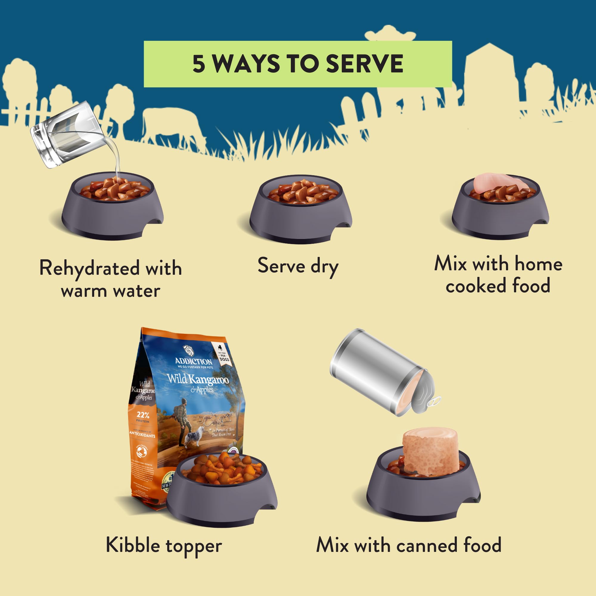 Can be served in different ways: Serve it on its own, as a kibble topper, with home-cooked food, or with canned food.