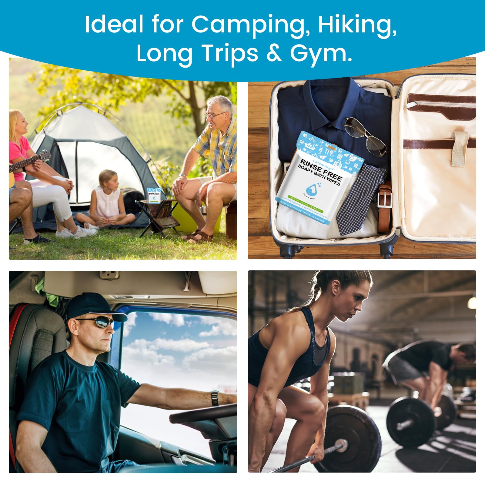 Light Portable Bag Ultra-lightweight—easy to toss in any bag. It comes in a waterproof, resealable pack to stay fresh for multiple uses. It’s an RV and camper-ready essential for a full-body wash. They also make perfect gifts for your camp kits or outdoor living packs!