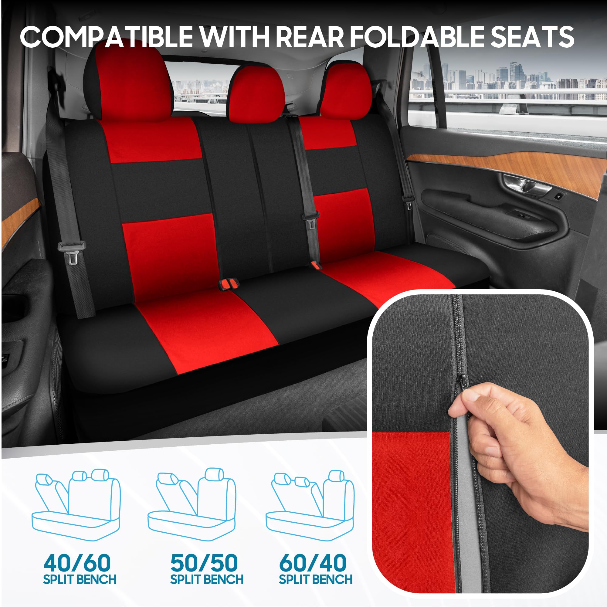 STYLISH MODERN DESIGN: Refresh your ride with a sleek, contemporary look. Our full set of seat covers features a bold two-tone design with detailed stitching, adding a pop of color and personality to your interior. It’s an instant upgrade that turns heads and transforms your car’s vibe from ordinary to eye-catching.