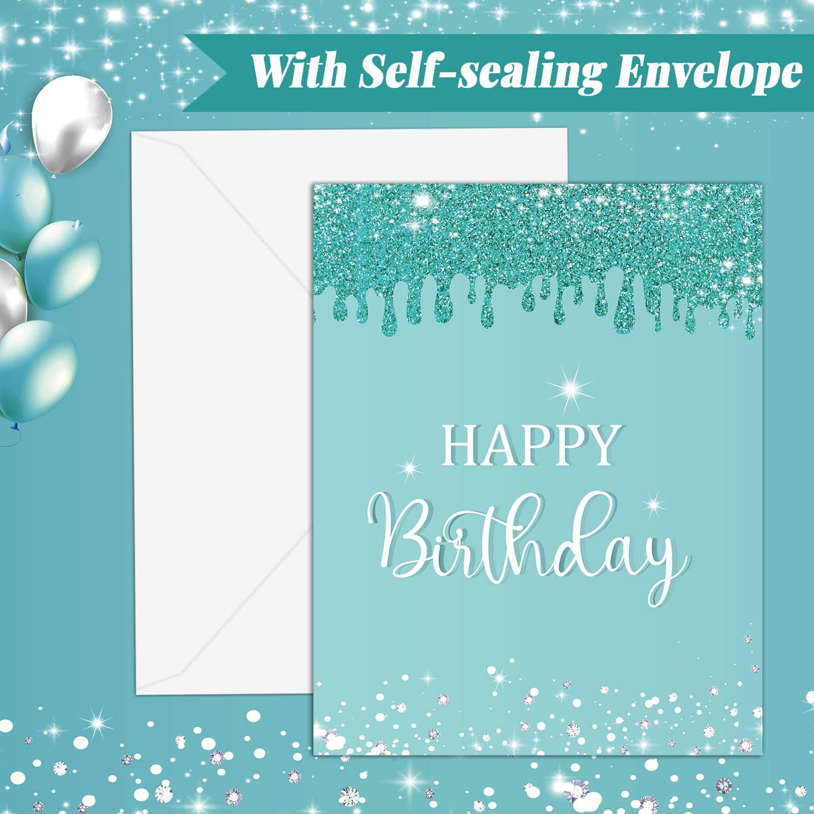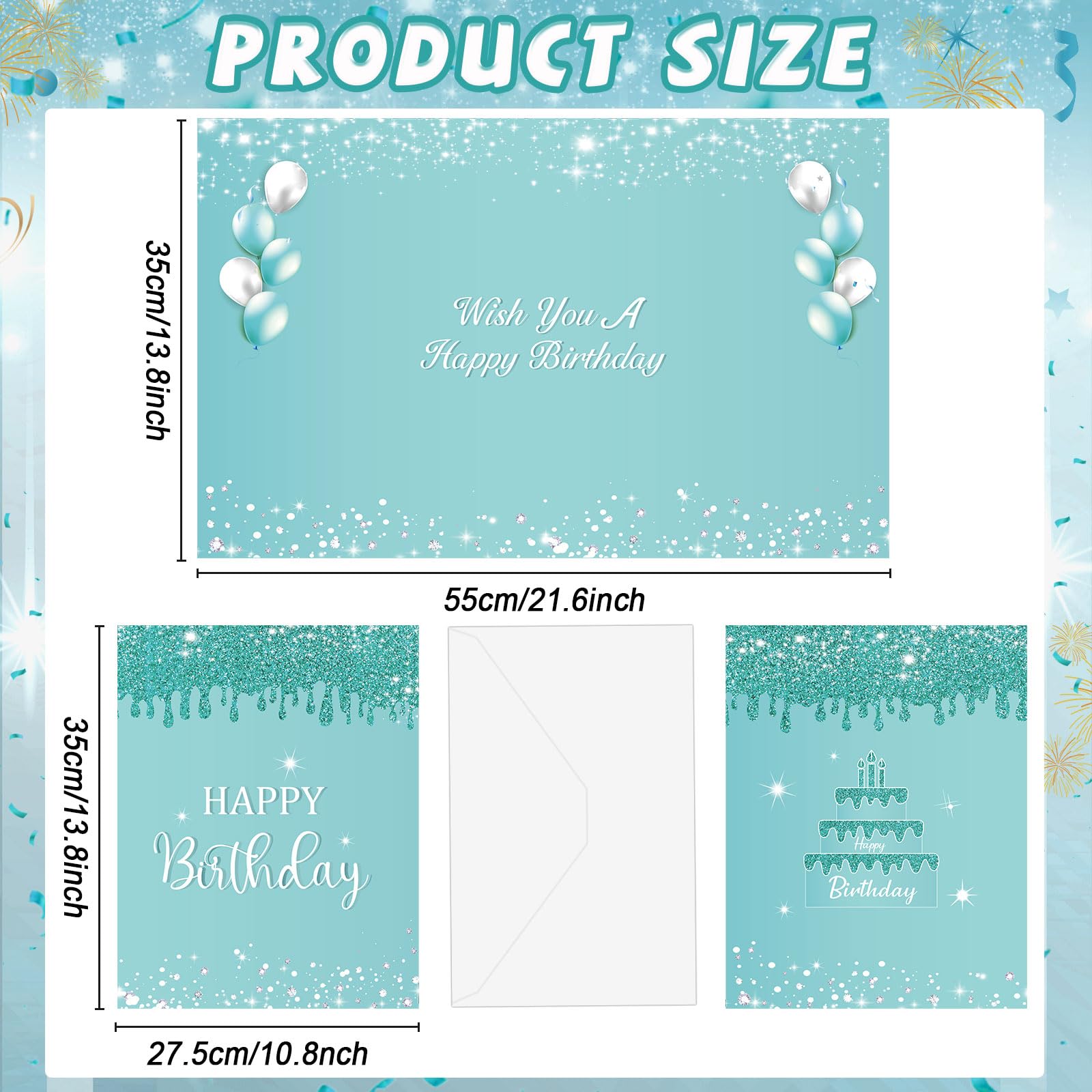 Stylish and modern design: The jumbo birthday card with envelope features a stylish teal and silver diamond, and balloon, and birthday cake patterns, adding a trendy and contemporary touch to any birthday party or event. The color combination exudes elegance and sophistication, enhancing the overall aesthetic appeal.