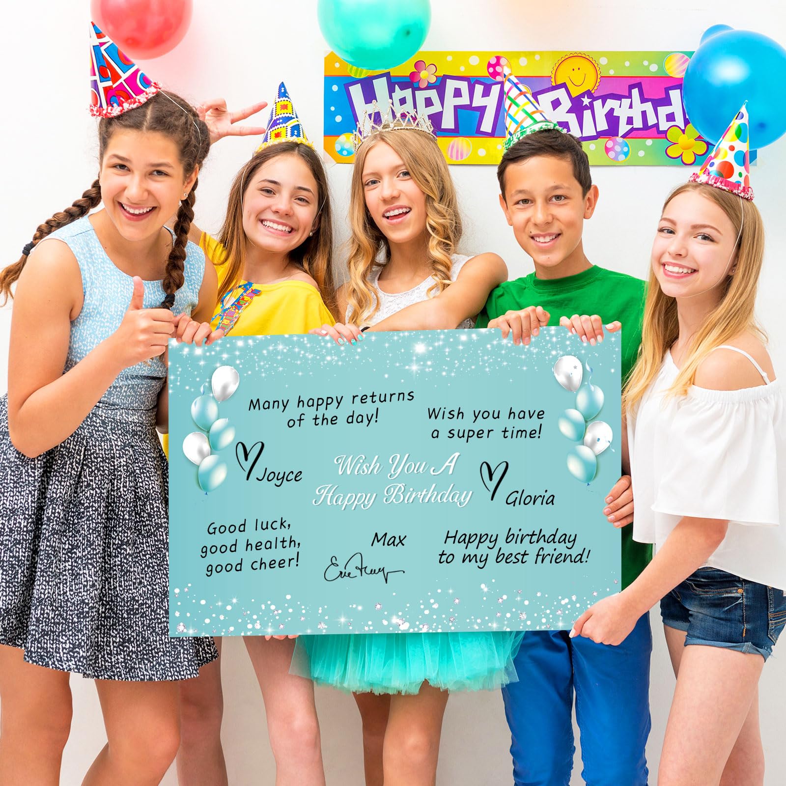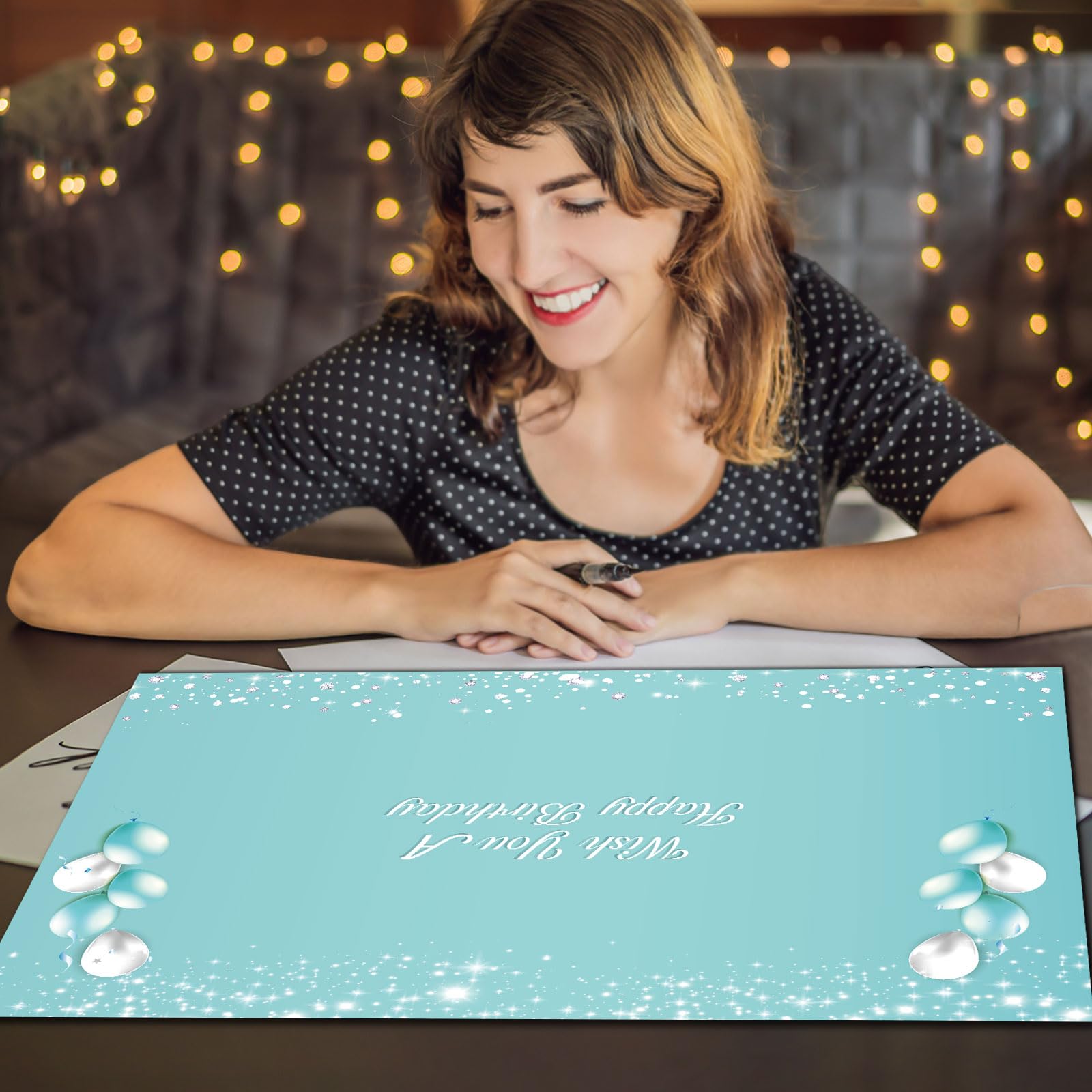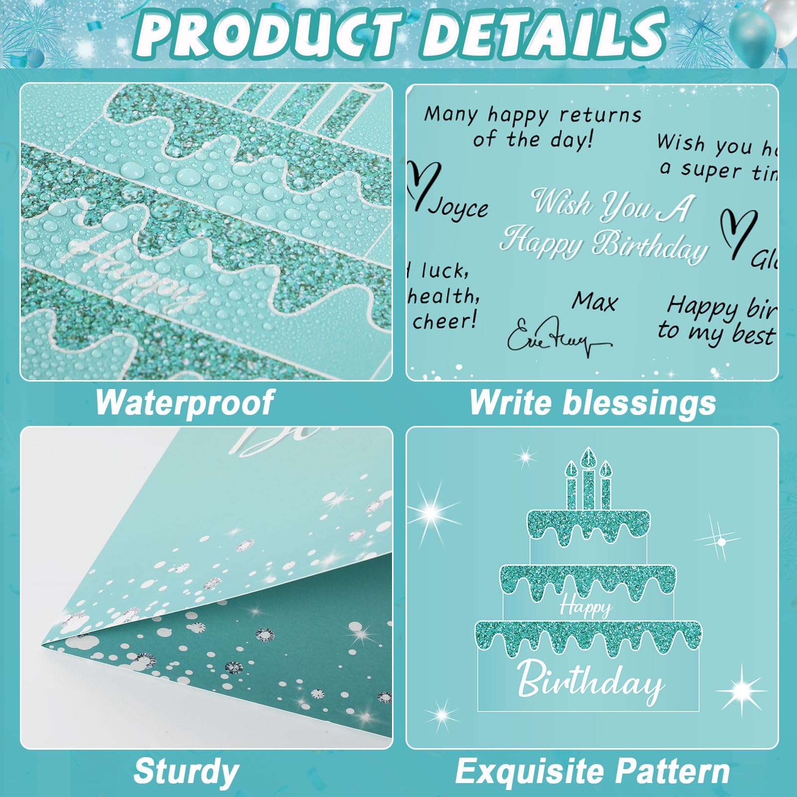 Ample space: The large teal silver birthday guest book for the party typically offers ample space for guests to write their messages, with large-size pages for signatures and well wishes. teal Happy Birthday gift card ensures that all guests have the opportunity to leave their personal sentiments, creating a comprehensive collection of memories.