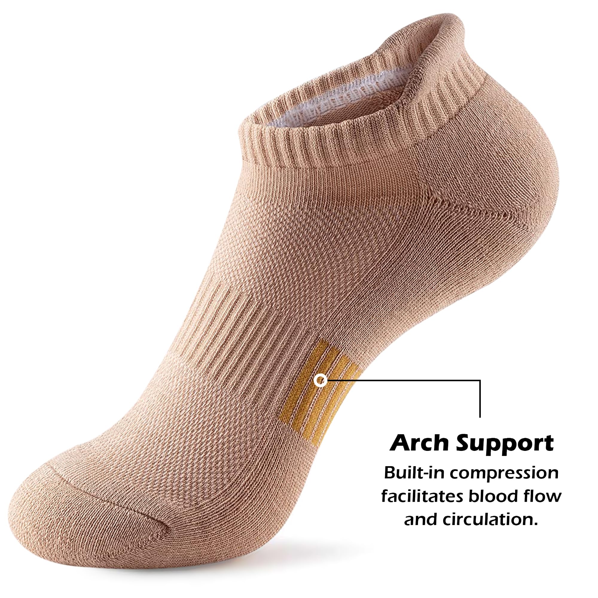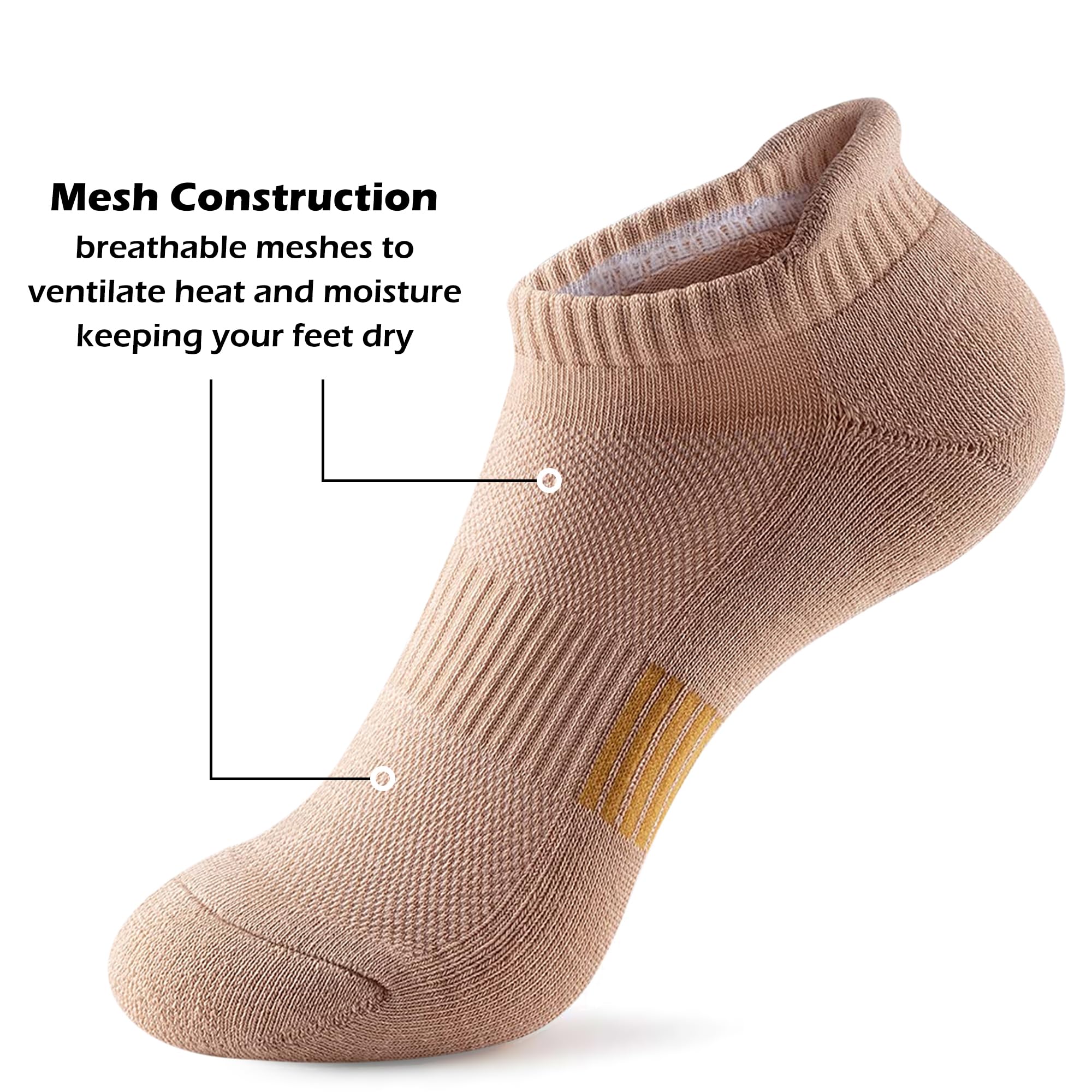 Packed with Functionality: Heel tab to prevent heel scratches,slipping and blisters; cushioned sole & arch support to reduce friction; reinforced meshes for heat and moisture ventilation!