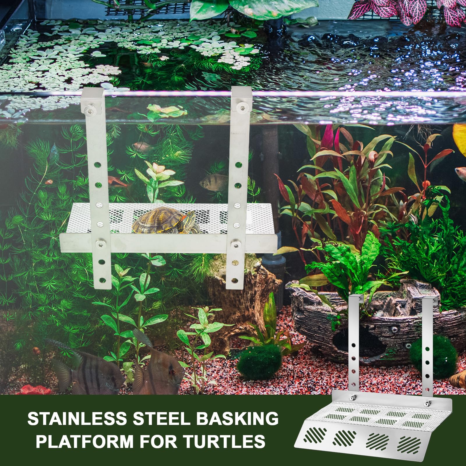 Quality Material for Durability: the turtle basking platform is constructed from 304 stainless steel that ensures its high durability and longevity( Note: please clean the stainless steel surface regularly to remove salt, dirt or other corrosive substances to prevent long-term adhesion and corrosion); Equipped with 2 sheets of plastic mesh nets, and 1 set hardware, 4 pcs screws and 4 pcs nuts