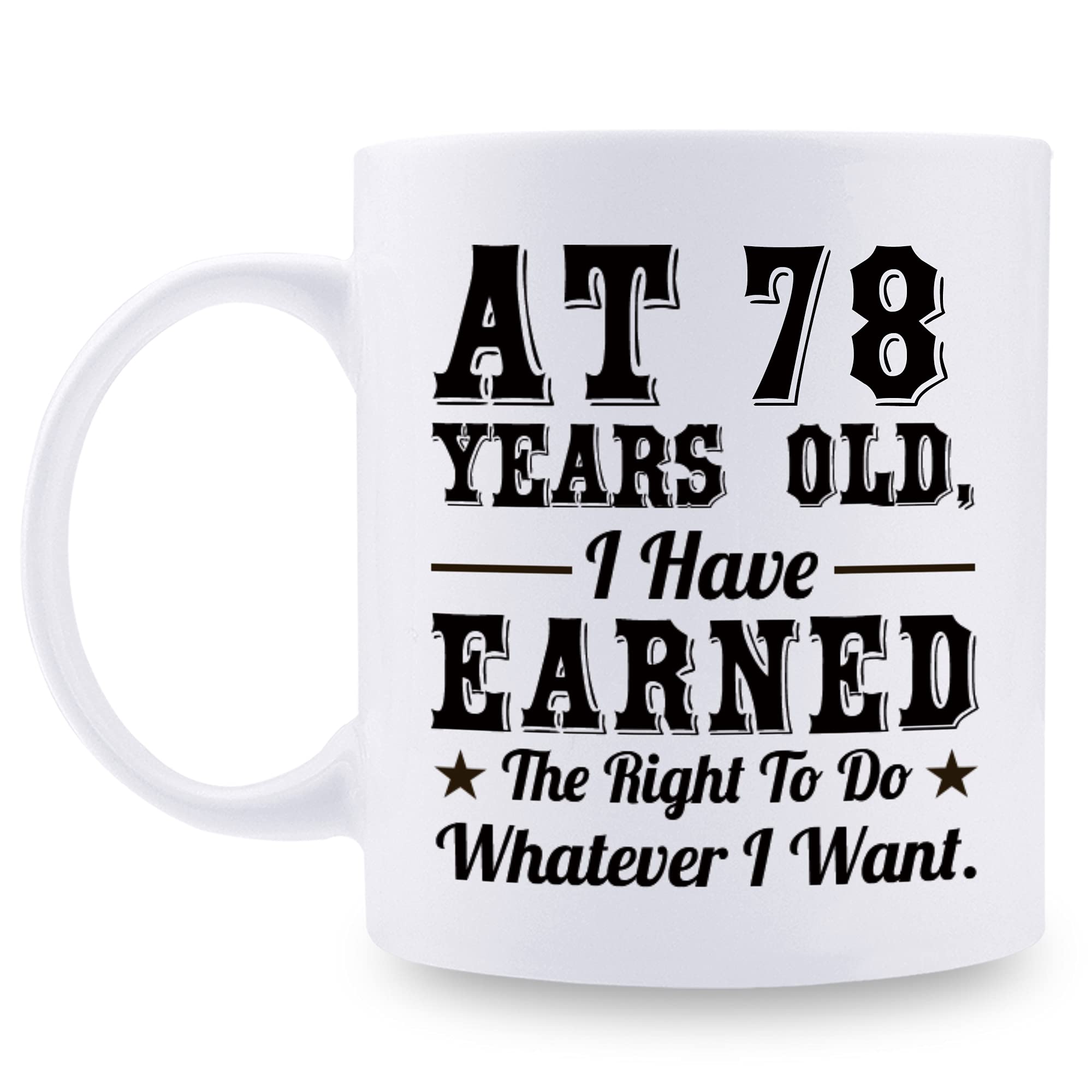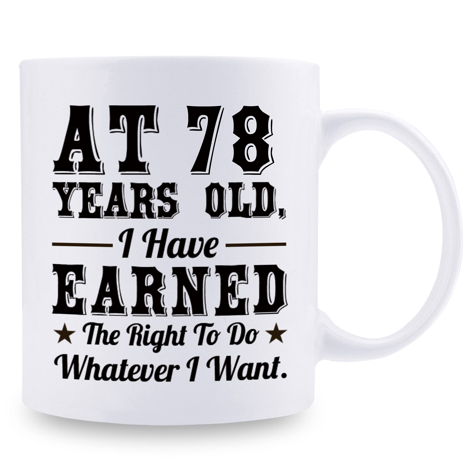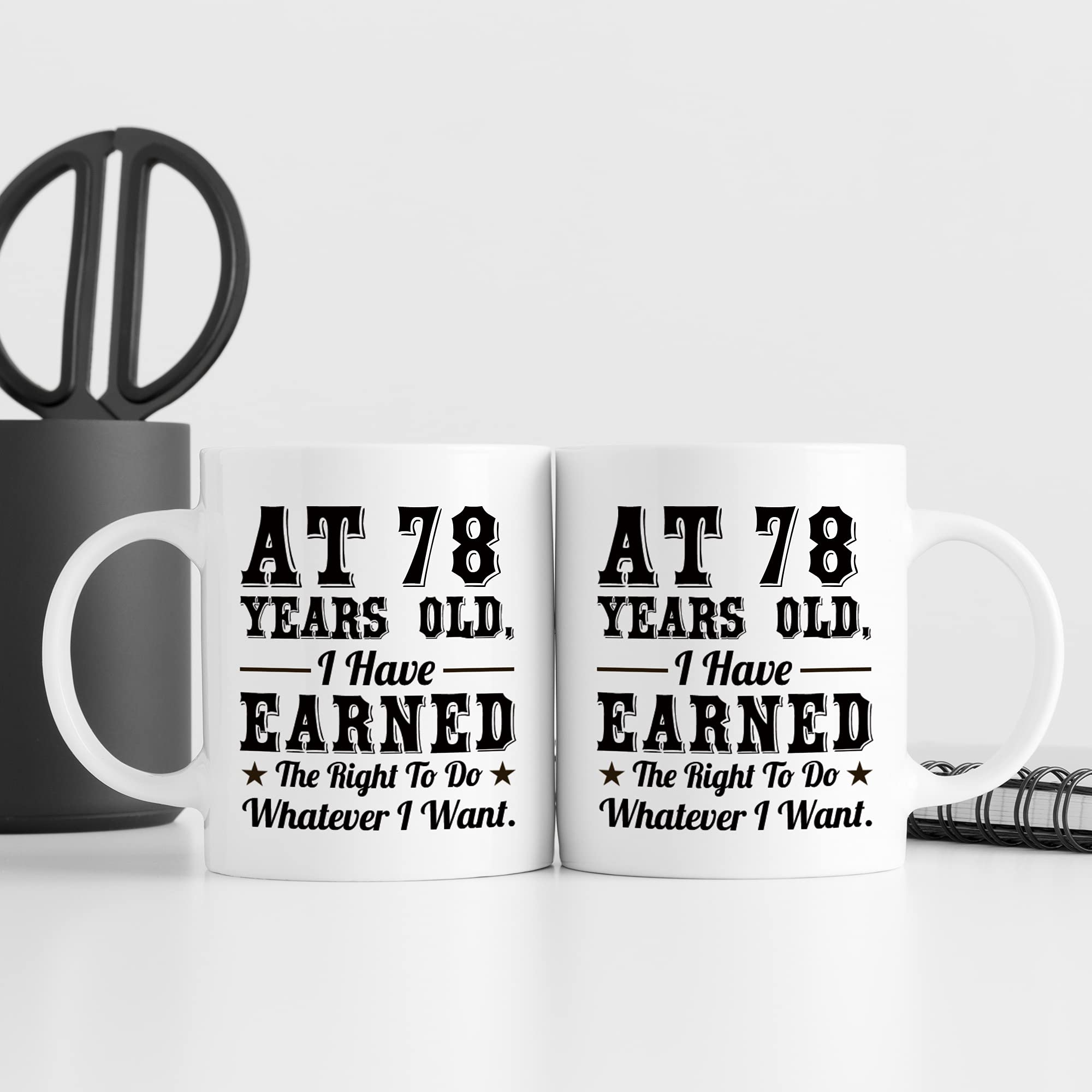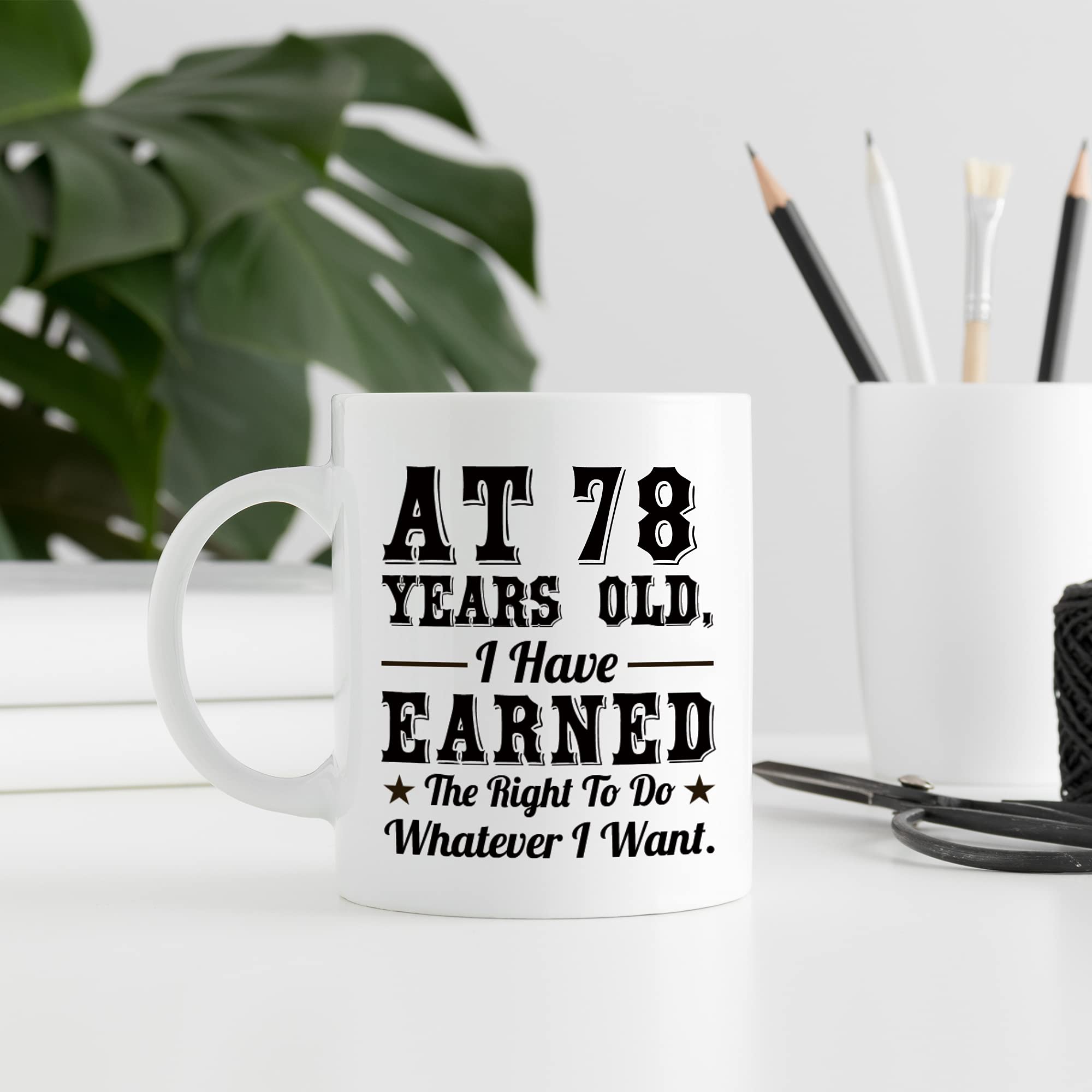 78th Birthday Gifts for Men Women - AT 78 Years Old I Have Earned The Right To Do Whatever I Want Mug - 78 Birthday Gift for Dad Mom Husband Wife Brother Sister Uncle Grandpa Friend - 11 oz Coffee Mug