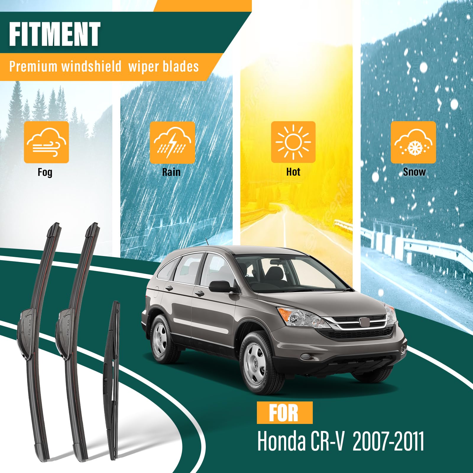 【FITMENT】KVQ Wiper Blades Replacement for 2007-2011 Honda CRV CR-V, 2018-2022 Nissan LEAF, 2007-2018 Acura RDX Windshield Wipers.