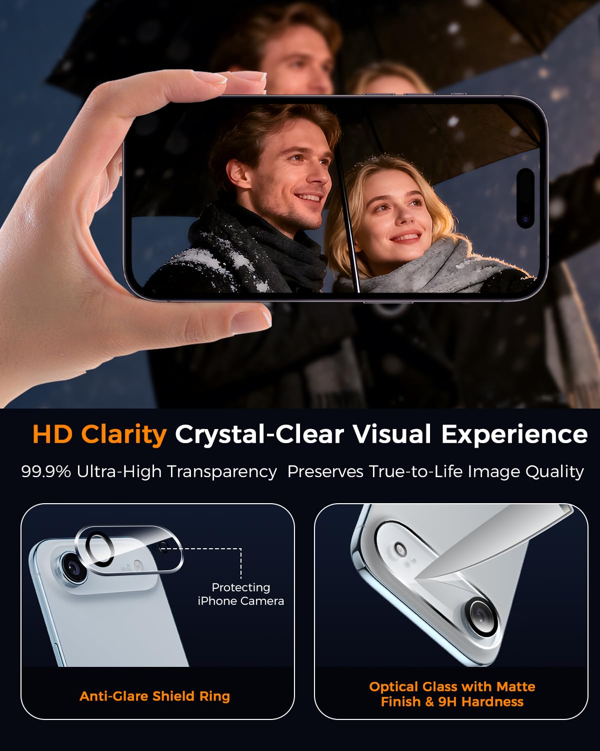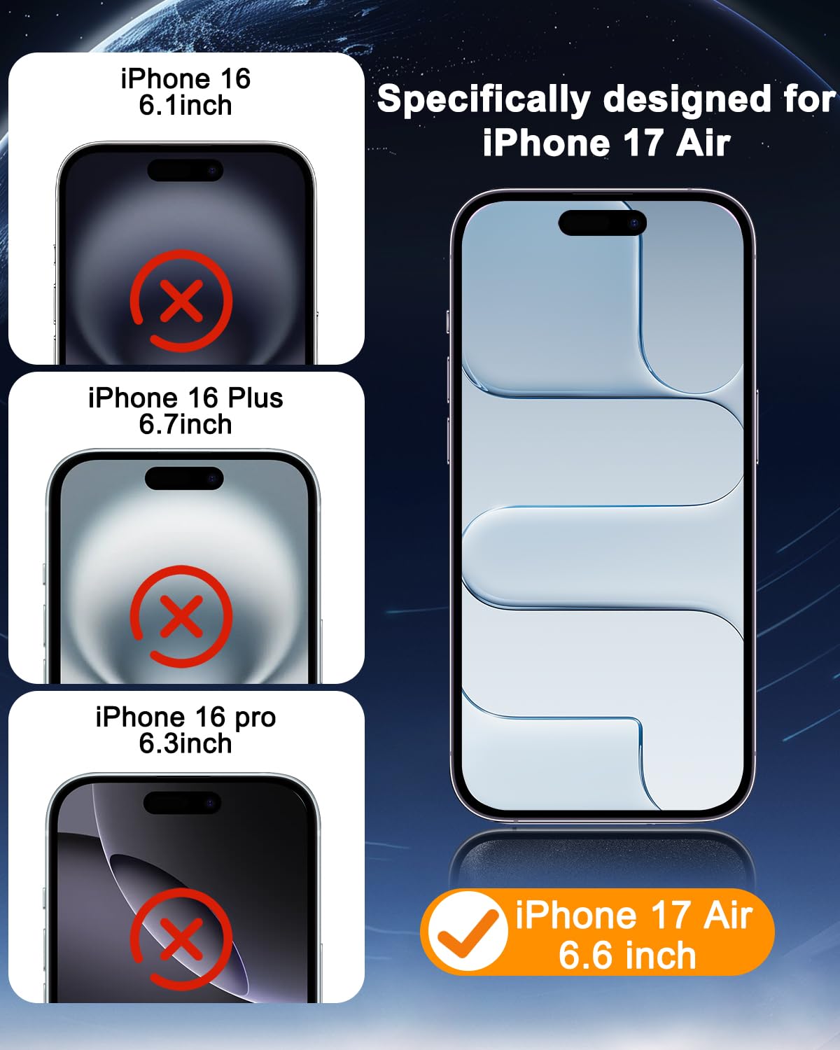 Screen Protection Compatibility: We offer 3 pcs tempered glass screen protector with camera protector, carefully designed for iPhone 17 Air 6.6 inch, incompatible with any other iPhone models, ensure perfect fit, please check your model before purchase