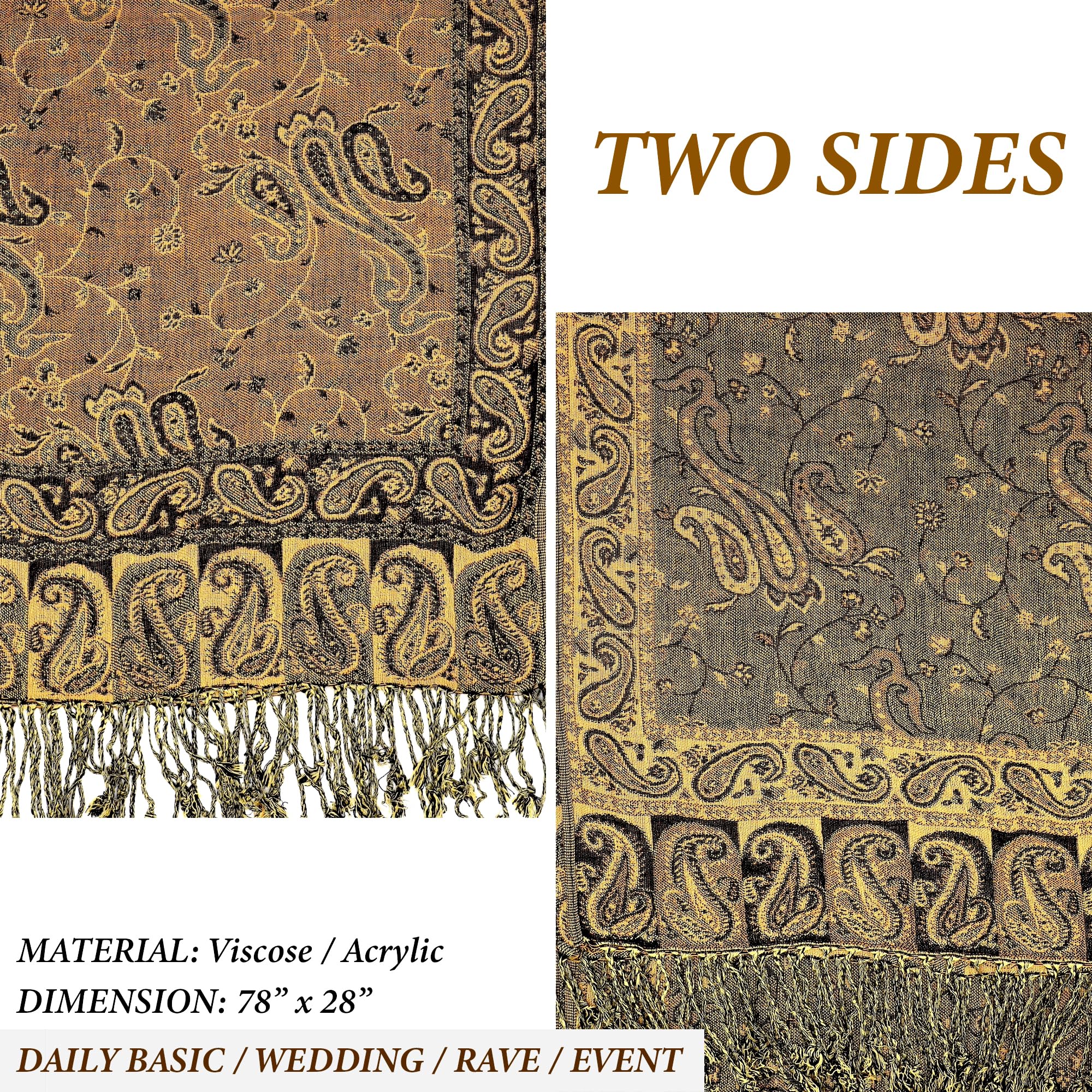 ✔️ Exotic Tapestry Look with Reversible Design – This reversible paisley shawl wrap for women features two beautiful color tones in one piece. It complements everything from evening gowns to rave outfits for men and women, offering vibrant style with graceful comfort.