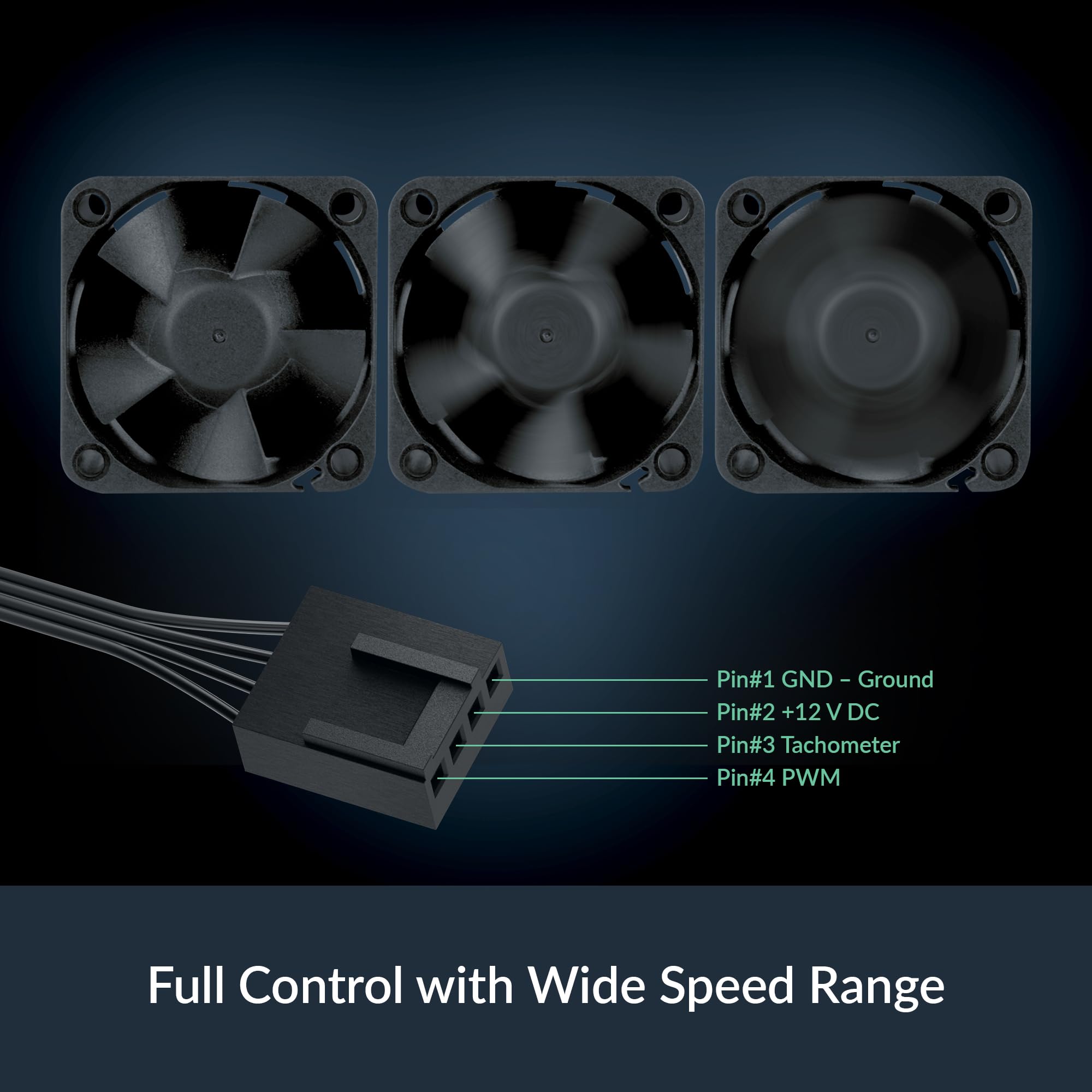 The S4028-6K has a particularly wide speed range that can be regulated via PWM and voltage. With its 6000 RPM max it offers a well-balanced ratio between cooling power and noise