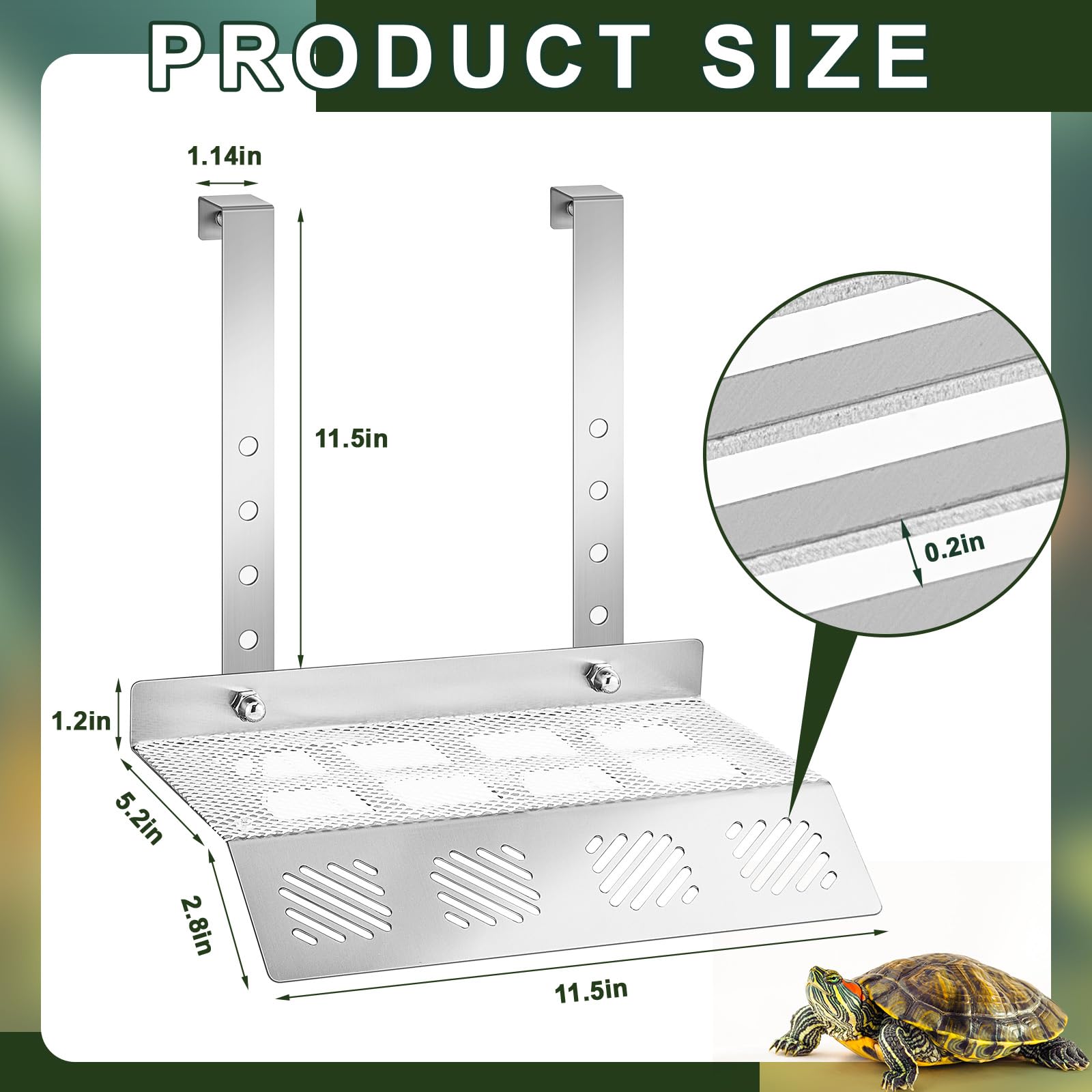 Quality Material for Durability: the turtle basking platform is constructed from 304 stainless steel that ensures its high durability and longevity; This rugged material withstands harsh, damp environments and effectively rust proof, ensuring your pet's basking area is always in ideal condition; Equipped with 2 sheets of plastic mesh nets, and 1 set hardware, 4 pcs screws and 4 pcs nuts