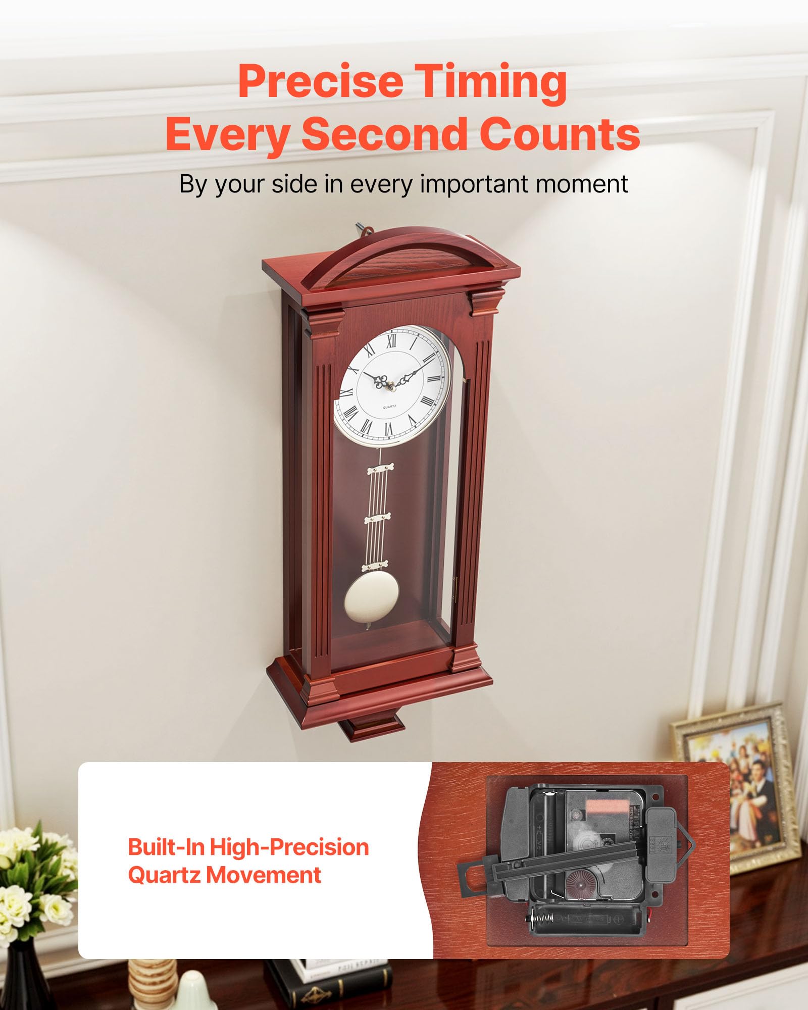 Precise Timekeeping: The wall clock with pendulum features a high-precision quartz movement, ensuring every second is accurately measured. It will accompany you through each important moment, whether for everyday use or special occasions