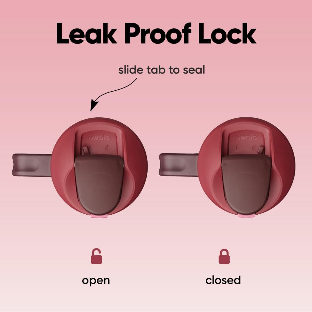 The Owala FreeSip Insulated Stainless-Steel Water Bottle with Locking Push-Button Lid easily tackles every thirst. With a built-in, easy-clean straw and a wide-mouth opening, the FreeSip reusable bottle is designed for drinking two different ways: sipping upright through the straw or tilting back to swig from the wide-mouth spout opening. Add in a push-to-open lid and playful colors, and staying hydrated has never been simpler—or more fun. Additional features include double-wall insulated stainless steel that keeps drinks cold up to 24 hours, a carry loop that doubles as a lock, a cup holder-friendly base, and a wide opening for easy cleaning and adding ice. The Owala FreeSip Insulated Stainless-Steel Water Bottle with Locking Push-Button Lid is available in three sizes: 24-Ounce, 32-Ounce, and 40-Ounce. Lid is dishwasher safe; hand wash cup. Not for use with hot liquids. Manufacturer’s limited lifetime warranty.