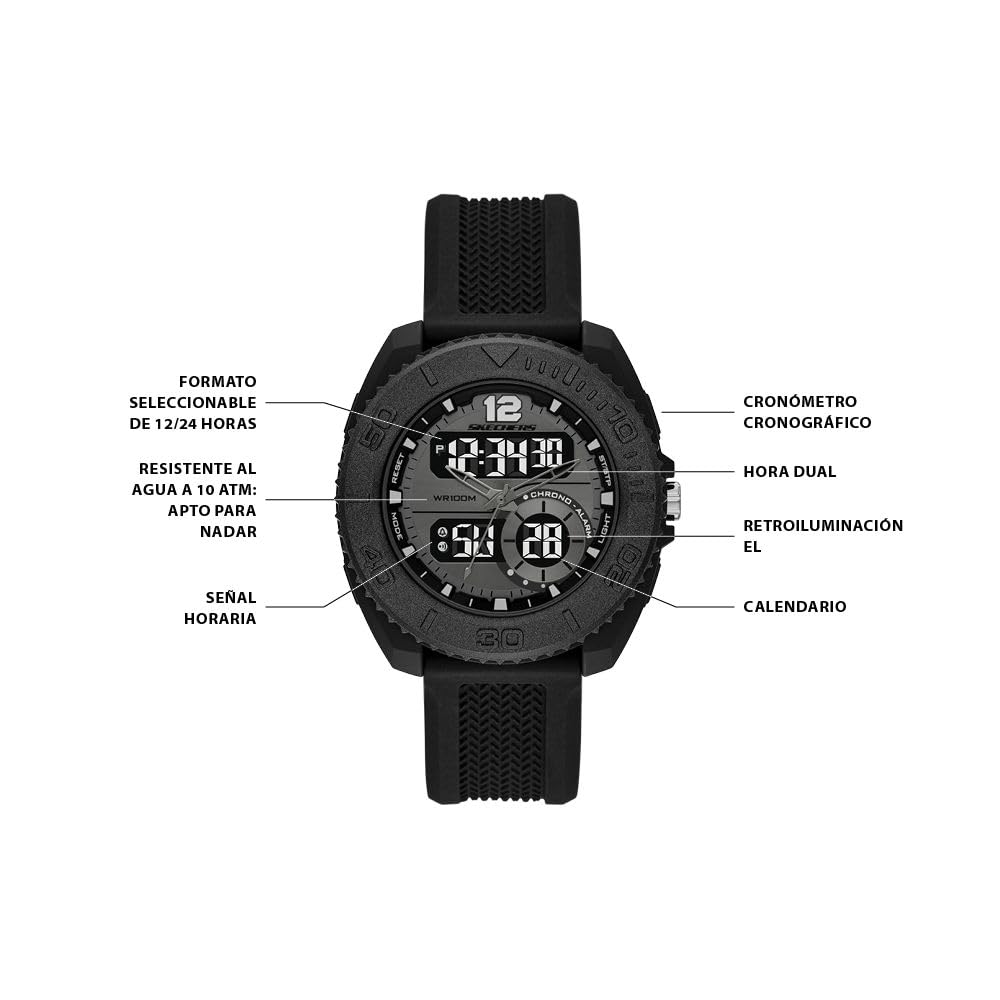 Case & Movement: 44mm case, 22mm band width, scratch resistant acrylic crystal, analog-digital movement with analog-digital analog display, imported.