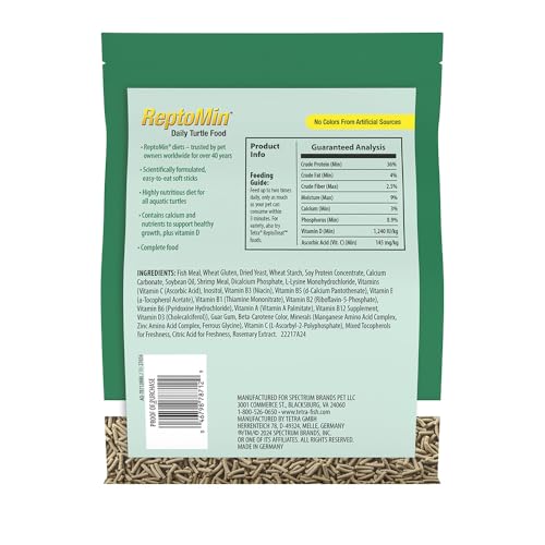 Tetra® ReptoMin® Floating Food Sticks are scientifically formulated for aquatic turtles, newts and frogs. These easy-to-eat soft sticks contain quality protein and precise amounts of calcium and nutrients to support healthy growth, plus stabilized vitamin C. With no artificial flavors added, this complete food gives you aquatic turtles quality protein in a tasty food stick they’re sure to love. Feed up to two times daily, only as much as your pet can consume within three minutes. Manufactured to strict quality standards, ReptoMin® products have been trusted by pet owners worldwide for over 40 years. Tetra® aquarium products are dedicated to helping seasoned hobbyists and beginners alike enjoy a successful, life-long aquatic experience. Our complete line of Tetra® nutrition, water care, filtration and aquarium products are designed to meet the needs of all hobbyists and the fish they love.