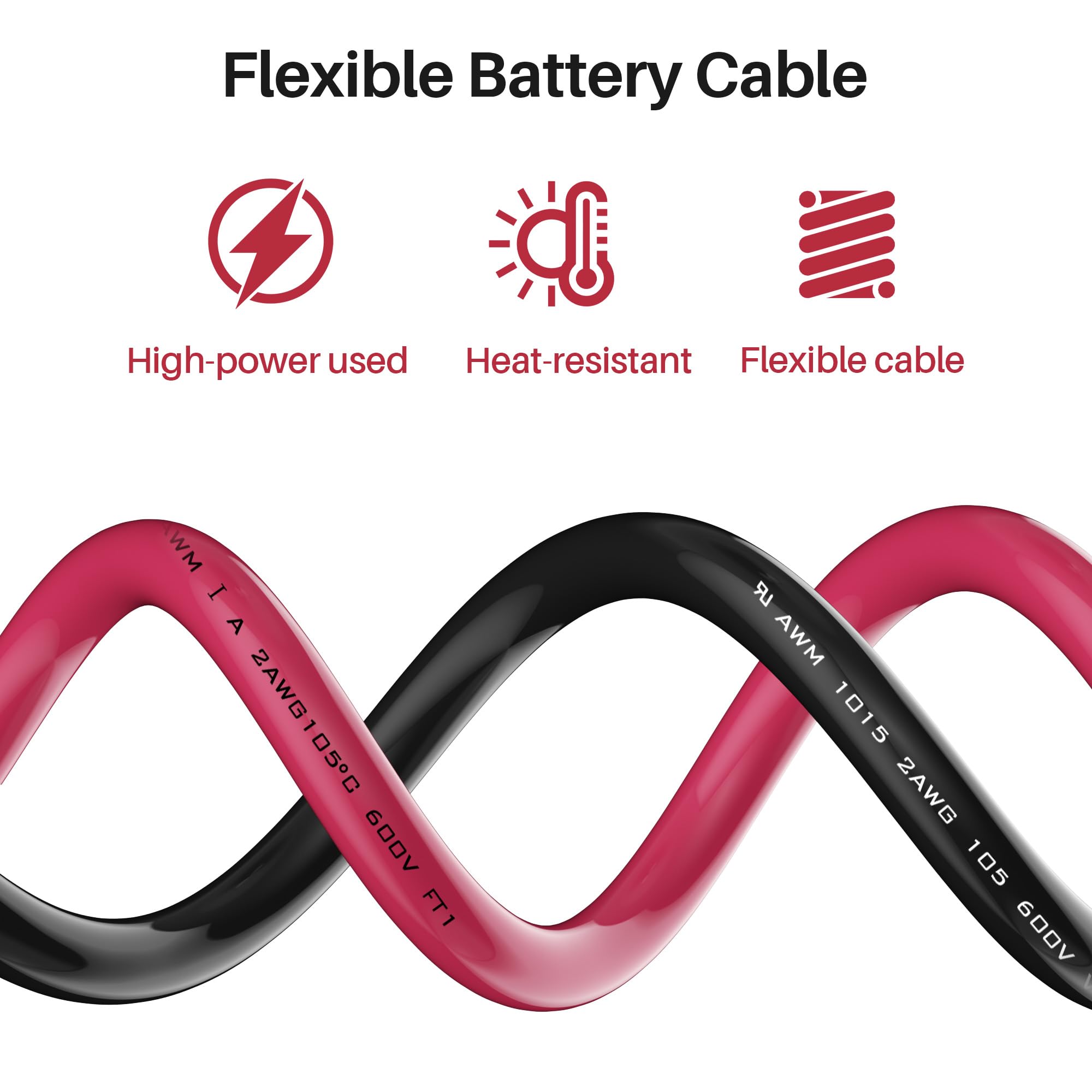 【Easy Installation】:Both ends of each cable come ready to install with pre-attached 2 AWG 3/8" tin-plated copper battery ring terminal and heat shrink tubing. This user-friendly design allows for quick and easy battery cable installation without specialized tools, making it perfect for DIY projects.