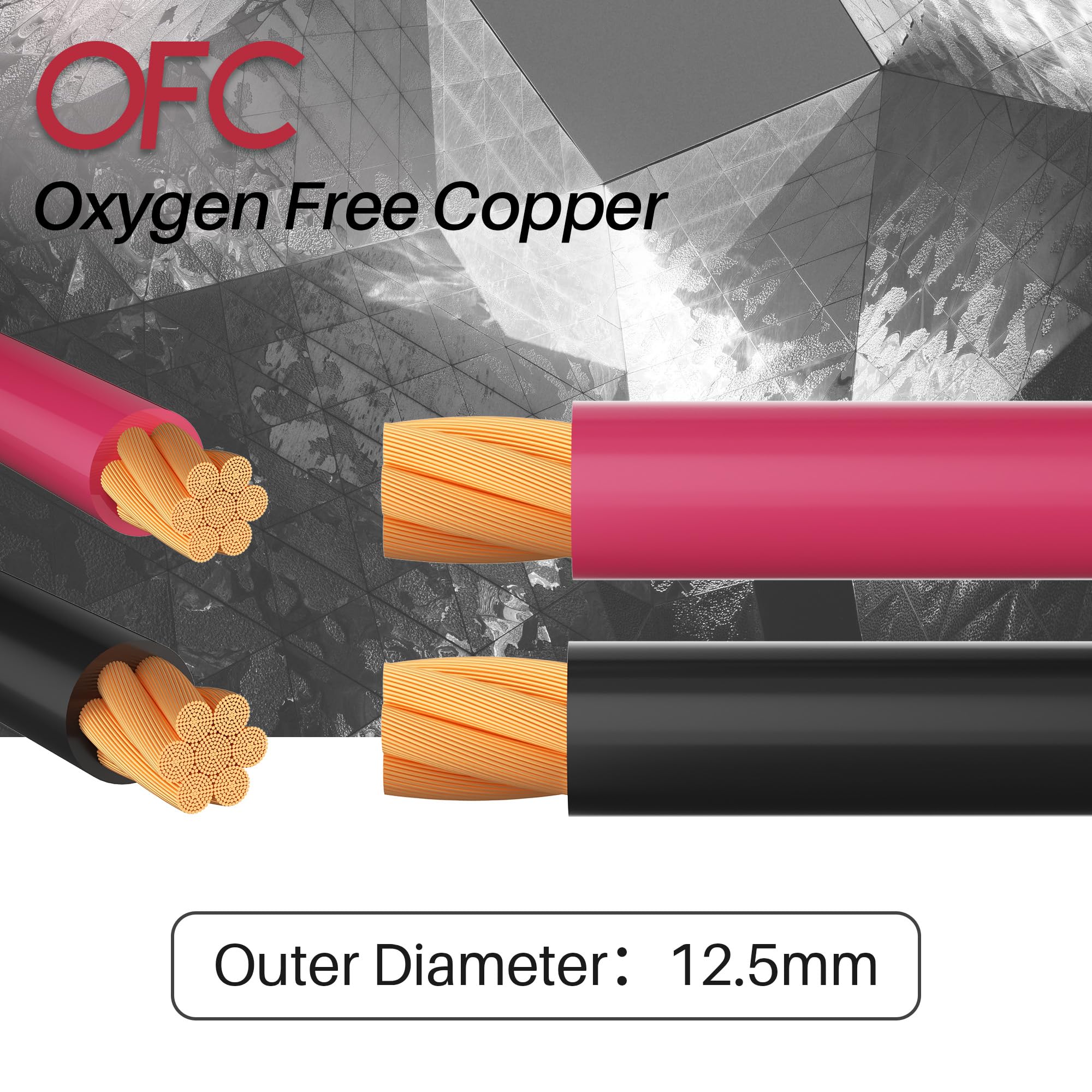 【Pure Copper Conductor】: Featuring high-purity oxygen free copper (OFC) conductors, ensuring optimal conductivity and minimal power consumption. Each cable is terminated with precision designed tinned copper lugs. This advanced plating technology significantly improves corrosion resistance and oxidation resistance, better maintaining its conductivity and extending its service life.