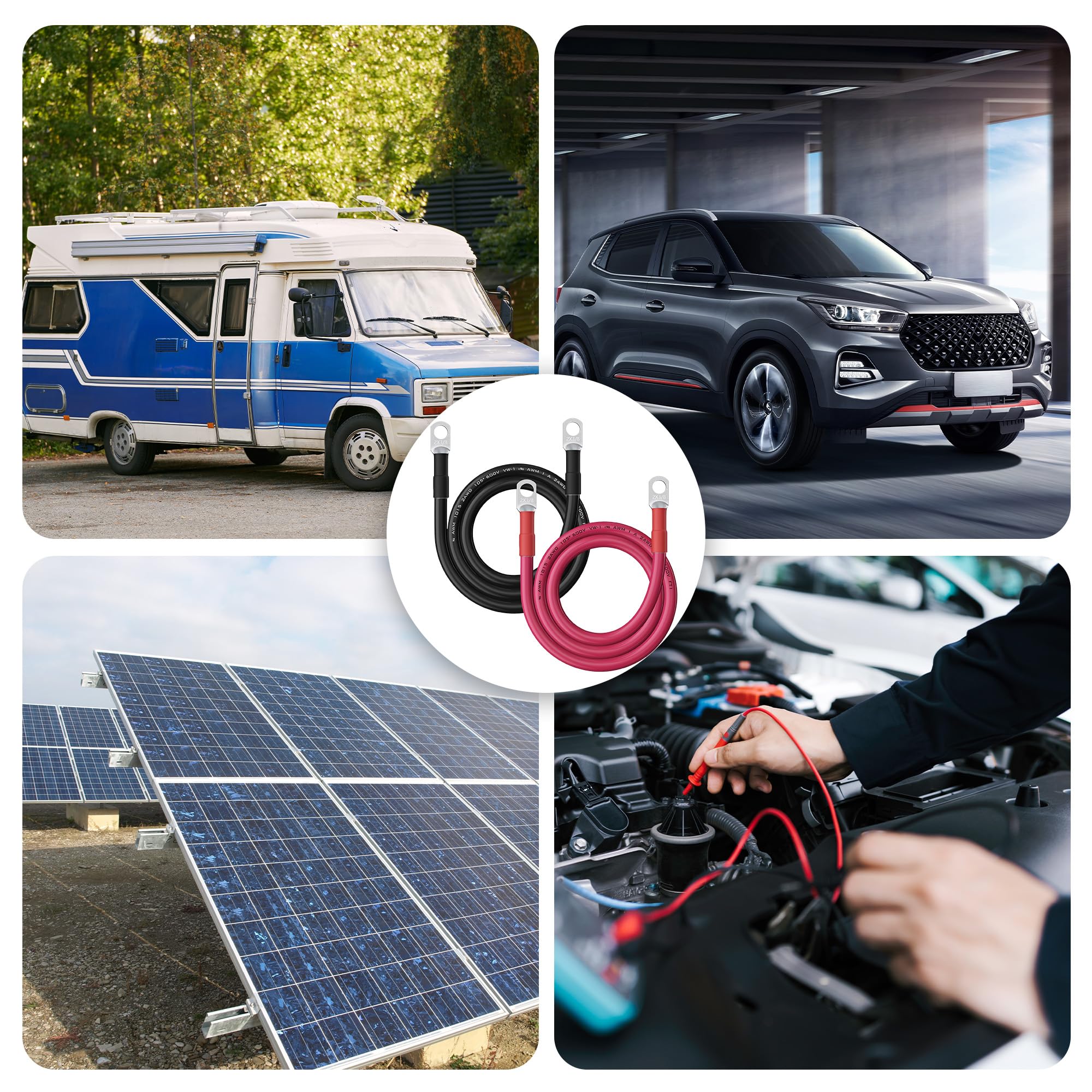 【Widely Application】 : These 2 Gauge battery cables are widely used for car automotive, motorcycles, RVs, trucks, trailers, boats, welding, and solar systems—meeting diverse power needs across applications. If you have any questions about our product, please feel free to contact with our reliable customer service, we will reply you within 24 hours.