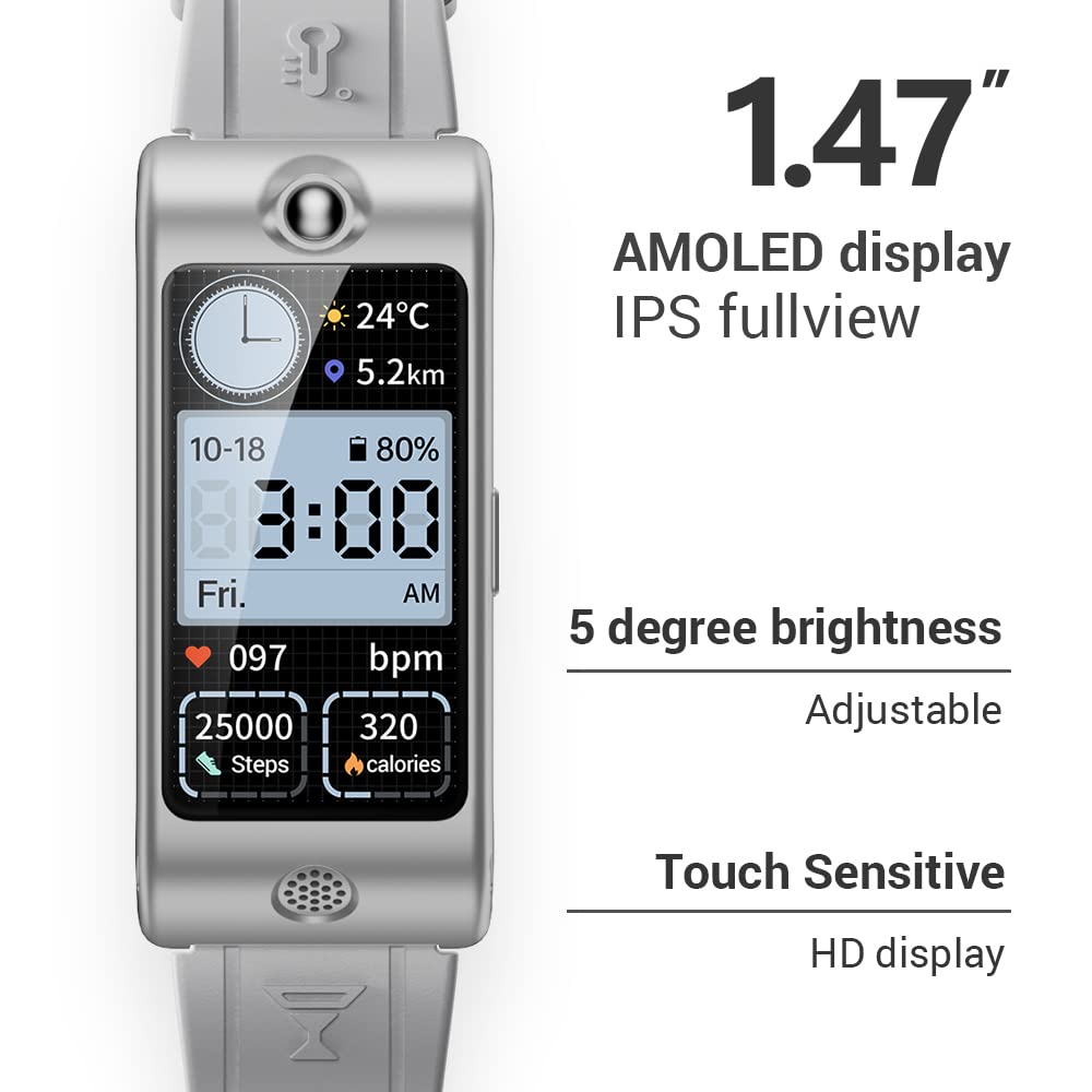 1.47-inch AMOLED Display: This stylish safety wristband tracker, complements your style with its distinctive design, metal trim accents 1.47-inch AMOLED Display, Brightness 50% increased, and it’s visible even in bright sunlight. Whether you’re going to the party , office, the gym, or anywhere in between, ROCAR is the perfect fit for your lifestyle.