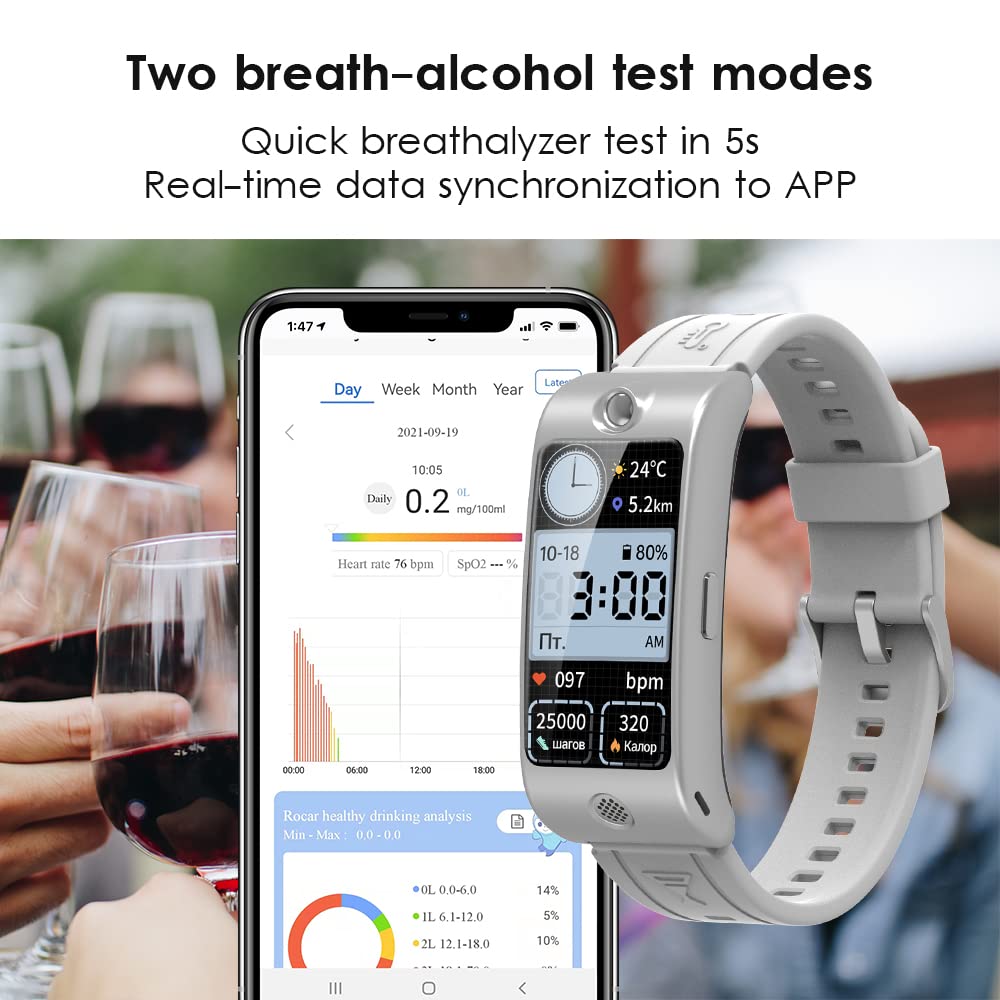 Alcohol Test Dual Mode (Standard & Daily) Practical and easy to use : Blow for 5 seconds and your ROCAR results are displayed 10 seconds later on a bright, easy-to-read AMOLED screen. The alcohol tester breathalyzer comes with 5 reusable mouthpieces. Wait 15 minutes after consuming alcohol for the most accurate result. In your efforts to drive more responsibly you need the most accurate results. ROCAR M-90 breathalyzers will always give you safety-grade accuracy.