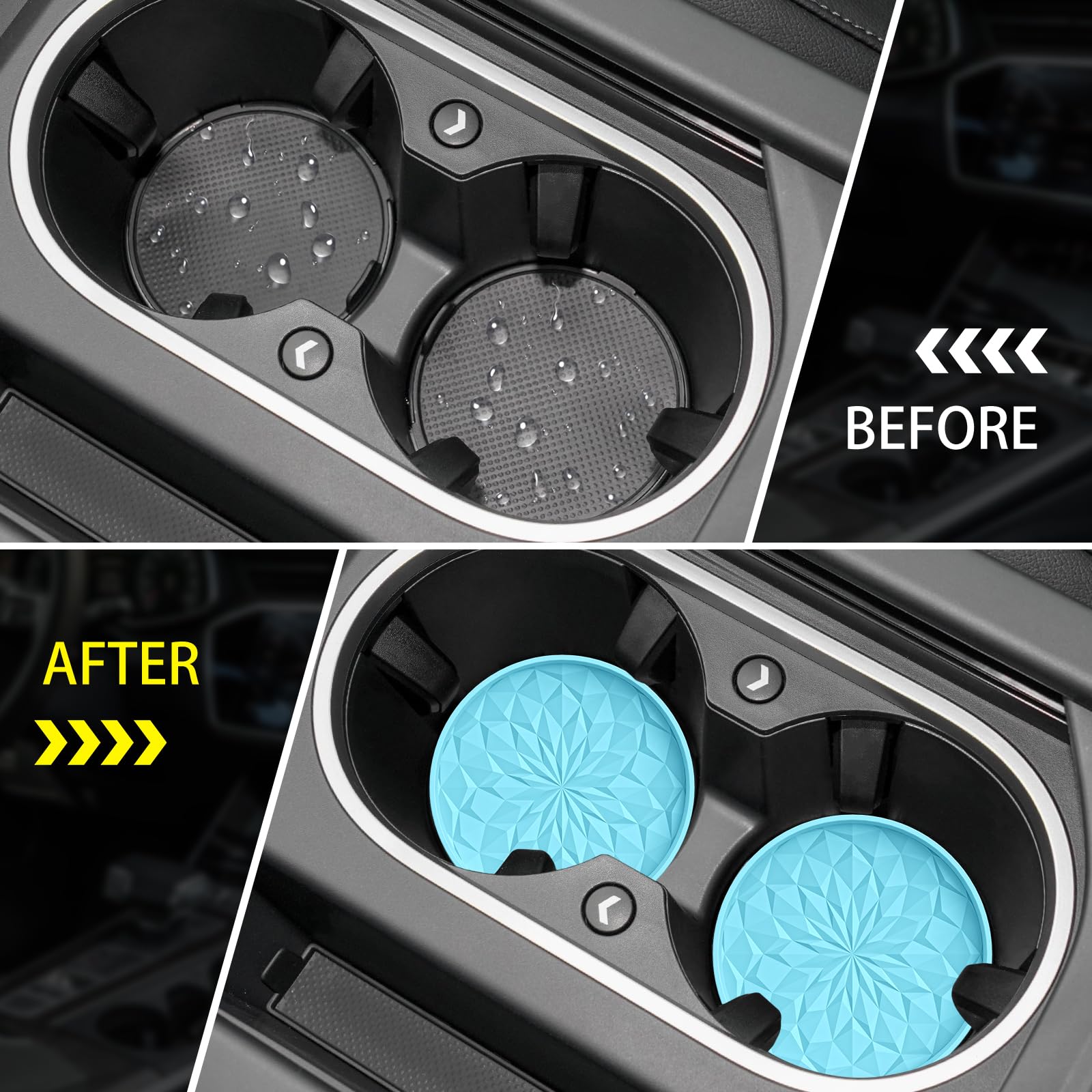 HEW STYLE DESIGN: The design of this coaster is inspired by diamonds, symbolizing eternity like diamonds. You will get 4 set silicone car coasters, the quantity can meet your daily use and replacement needs.