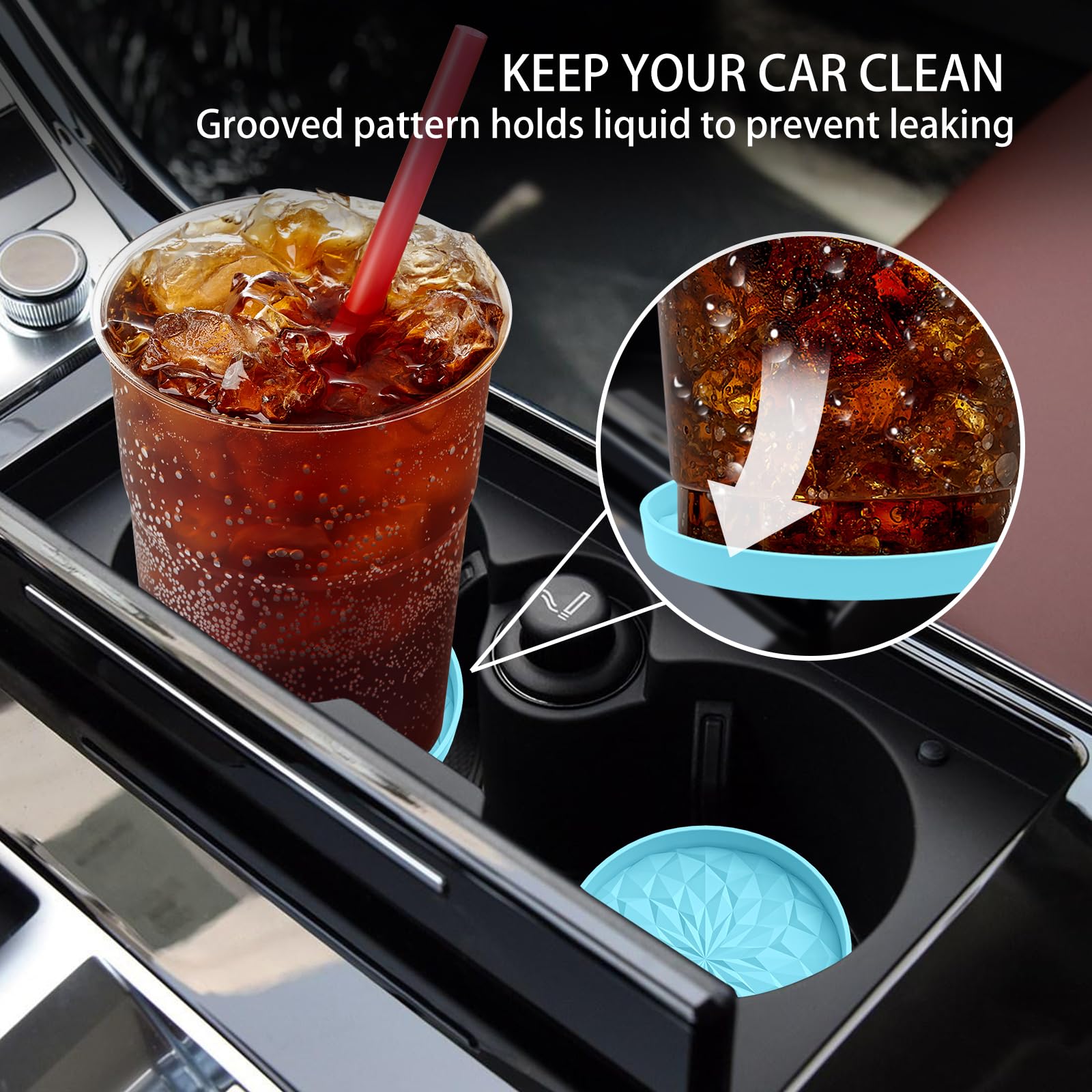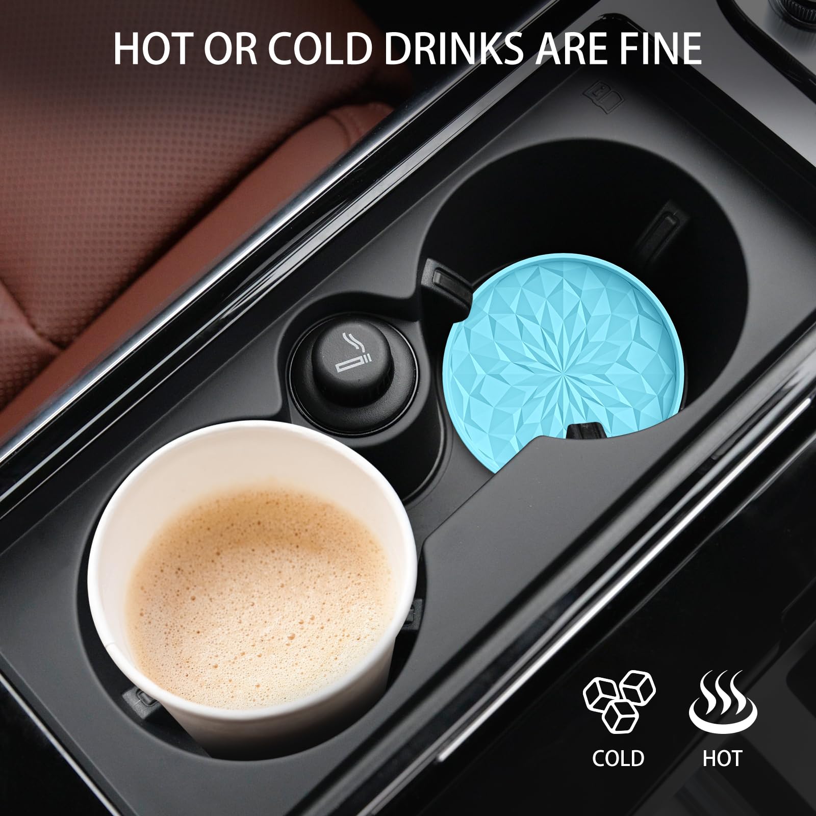 LONG-TERM USE & HEAT RESISTANT & DISHWASHER AVAILABLE: The car coasters are made of food grade silicone, soft & flexible. Heat resistant range from -40F to 480F, can be used for cold or hot drinks in car. If it gets dirty, just throw it in the dishwasher.