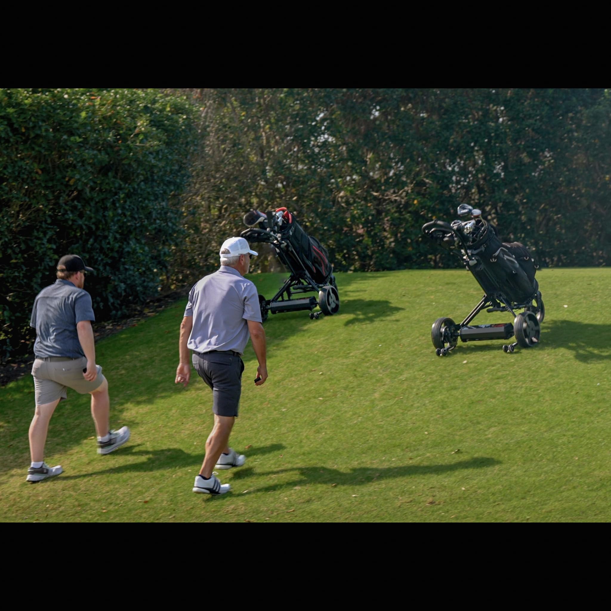 ποΈββοΈ THE NEW 2025 V2Pro - V2Pro allows you to setup at the course in less than a minute. Now you can simply set your cart on top of V2Pro, pivot the permanently attached wheelie bars outwards, and you're ready to go!
