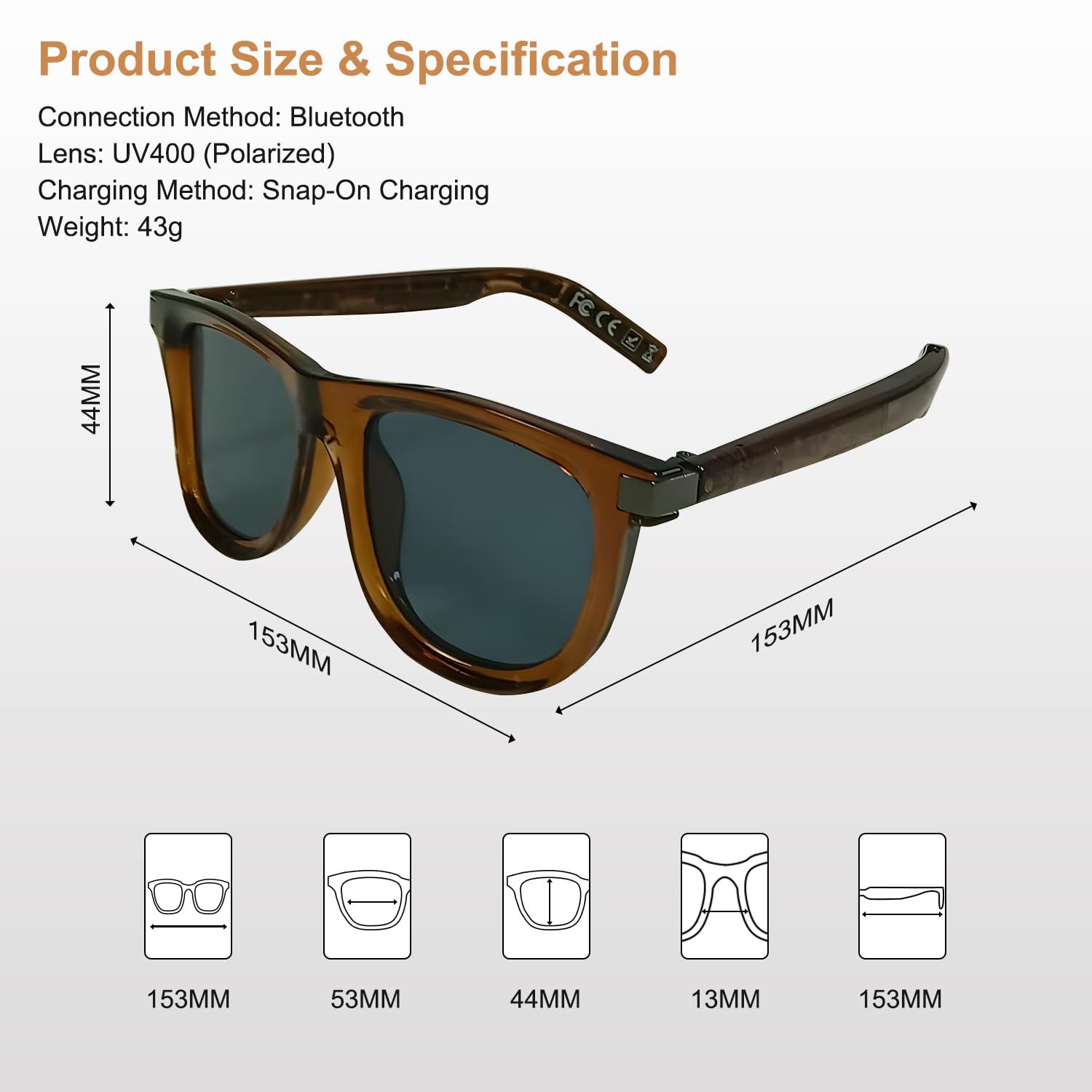 【High Quality Sound & Open-Ear Design】 Enjoy the clarity of the AAC speakers in your smart sunglasses without blocking out ambient noise. Smart noise cancellation technology provides a clearer listening experience, while the open-ear speaker system keeps you aware of your surroundings.