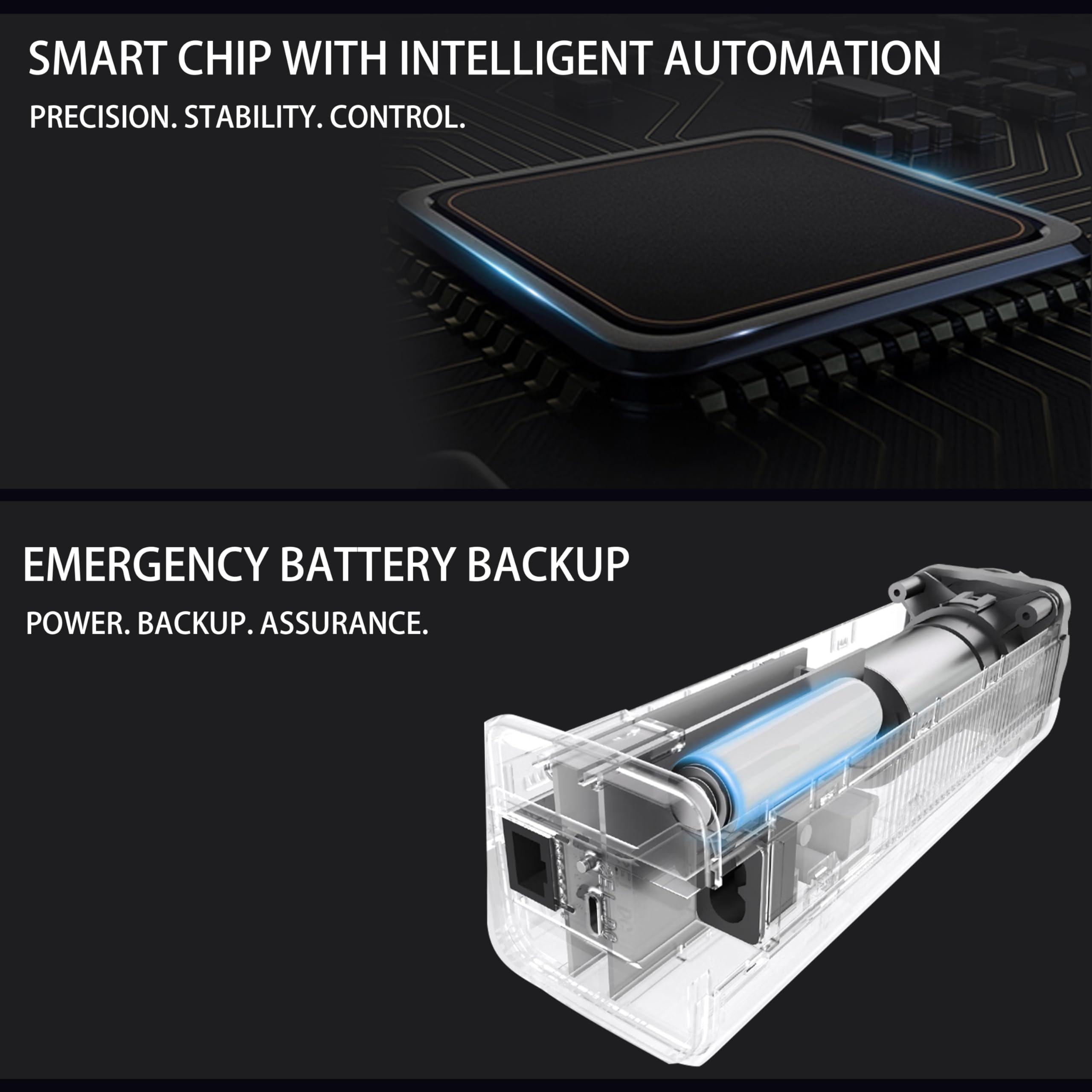 【Whisper-Quiet, Powerful & Customizable Motor】 Enjoy smooth, silent curtain movement with the mains-powered motor, featuring 3-speed options, intermediate position setting, and adjustable end limits for full control. Comes with a 3m detachable power cable and a battery backup to ensure operation even during power cuts.