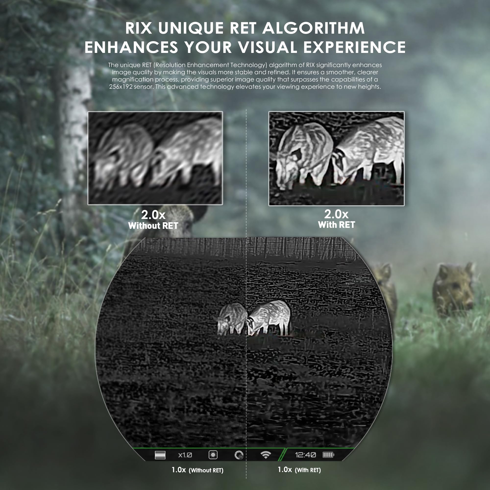 【RESOLUTION ENHANCED TECHNOLOGY (RET)】- The POCKET incorporates the latest Resolution Enhanced Technology (RET) by RIX, taking image clarity to new heights. By doubling the number of pixels in the image and utilizing advanced AI algorithms to simulate surrounding pixels, RET enhances image clarity to a level comparable to higher-resolution sensors.
