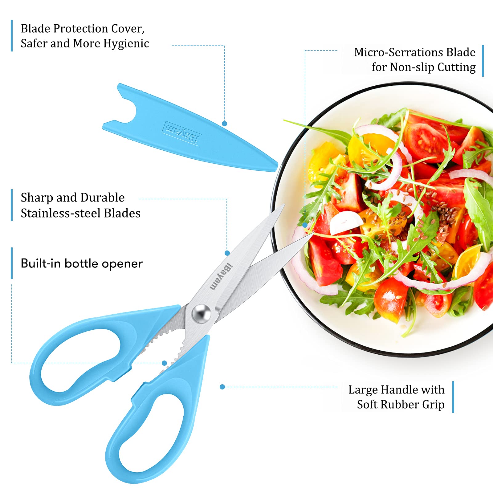 STAINLESS STEEL SHARP BLADES: high quality hardened stainless steel blades easily cut through cardboard, twine, food, meat, vegetables, chicken, poultry, fish, herbs, seafood, BBQ, food packing bags and more. Great as Food Scissors, Meat Scissors, Cooking Scissors, Scissors Kitchen, Cooking Shears, Poultry Scissors, Utility Scissors, Meat Cutting Scissors.