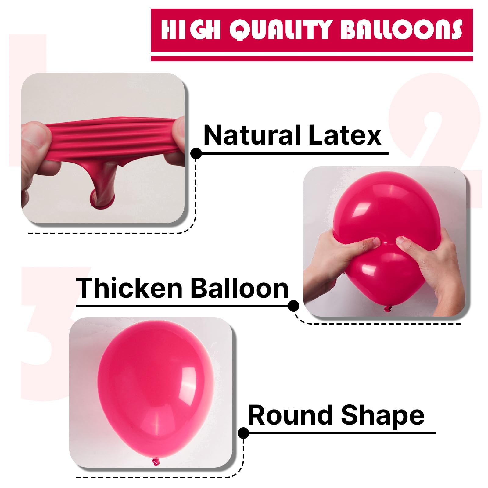 Thick Durable Latex: These hot pink balloons are made with high quality thick material, each balloon stays full longer perfect for arches garlands centerpieces. Ensuring your graduation, birthday stays perfect from setup to celebration end.